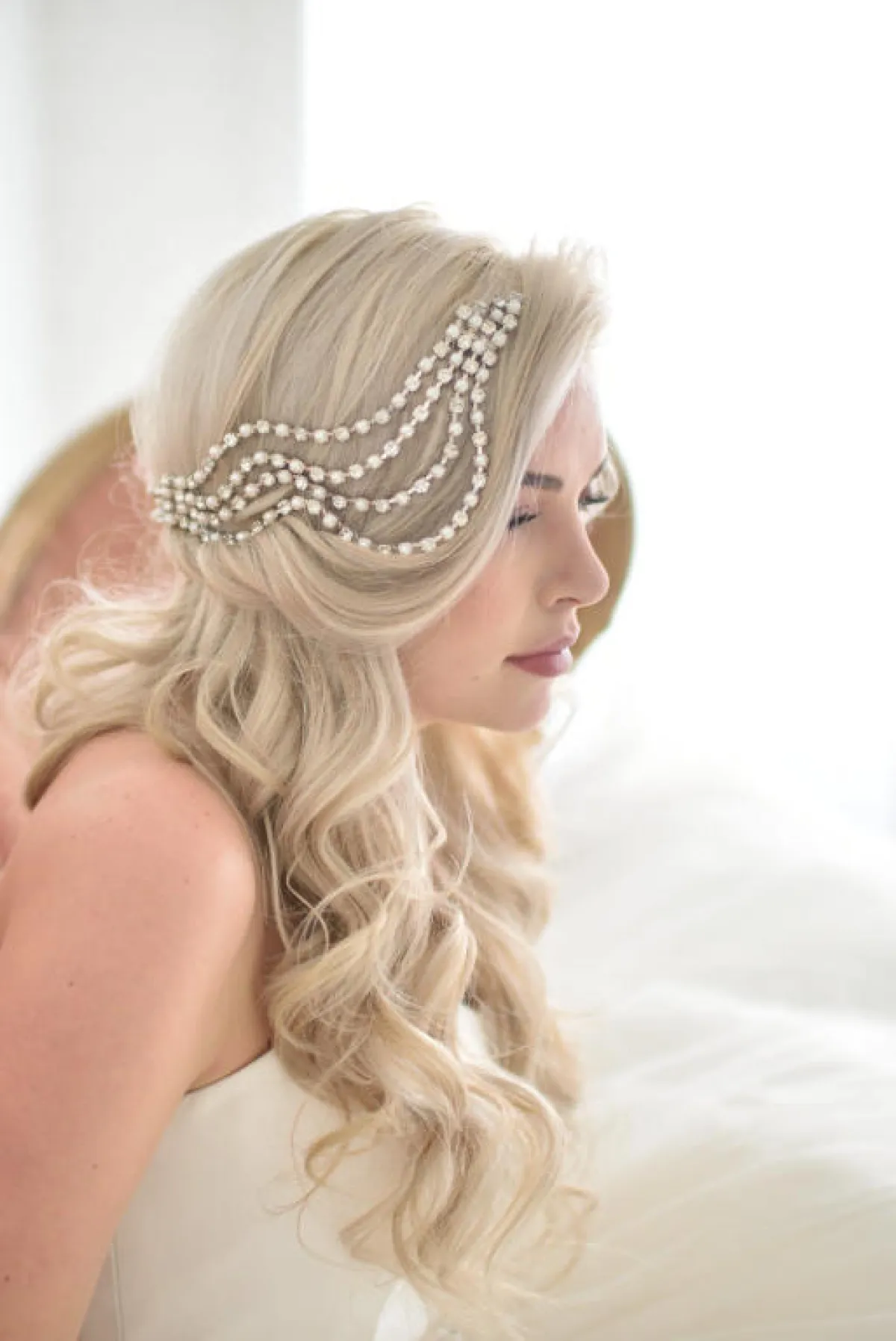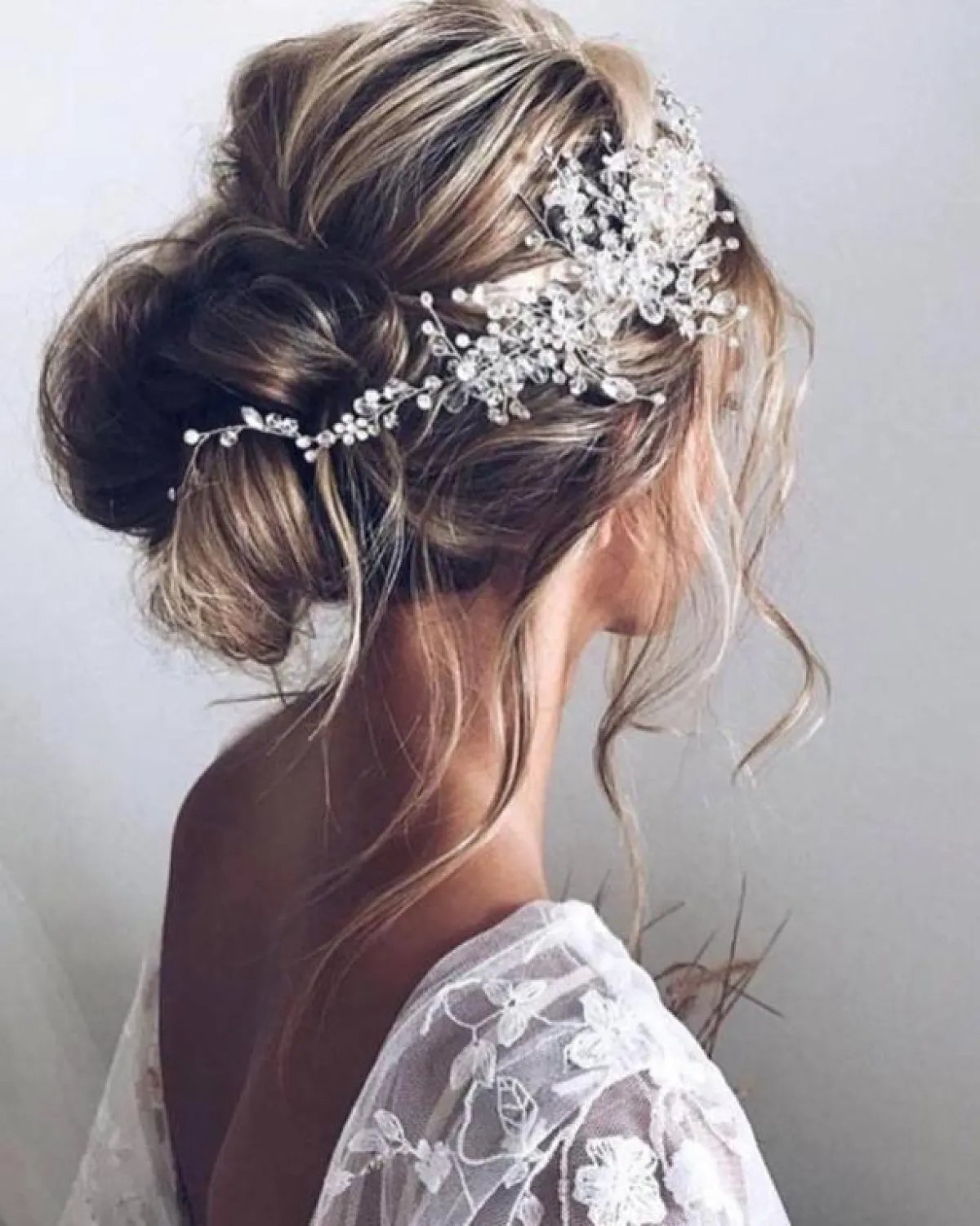 تسريحات العروس المزينة بـ إكسسورات الشعر الكريستالية لاغنى عنها على الإطلاق في إطلالة الصبية يوم زفافها، سواء كان التاج المرصع بالأحجار، أو الإكسسورات الاخرى بمختلفة التصاميم الكريستالية، لأنها تضيف لمسة فخمة وأنيقة للمظهر ككل.