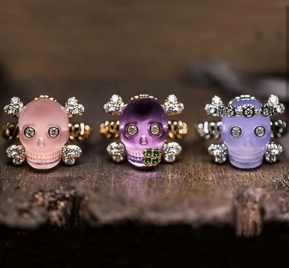 دار ديور Dior الفرنسية قدّمت ضمن خط مجوهراتها ديور فاين جوليري Dior Fine Jewellery خواتم على شكل جماجم فيها الكثير من الإبداع والتميّز، حملت توقيع المصممة فيكتوار دي كاستيلان Victoire de Castellane. وهي خواتم بتصميم غريب وجريء، يمكنك تنسيقه مع إطلالاتك المسائية ومع إطلالاتك الكاجوال في الوقت نفسه.