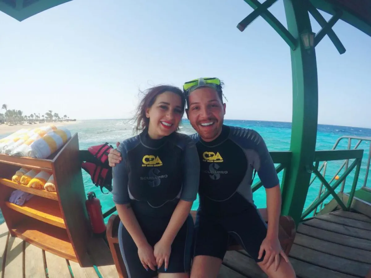 في احتفال خاص بشهر العسل، خاض العروسان محمود حجازي وأسماء شريف منير، أول تجربة غوص تحت الماء بشاطئ سهل حشيش بمدينة الغردقة، حيث شاركت العروس متابعيها بموقع الفيس بوك، صورًا عدة لهما أثناء الاستعداد لتجربة الغوص مع لقطات لهما من الأعماق.