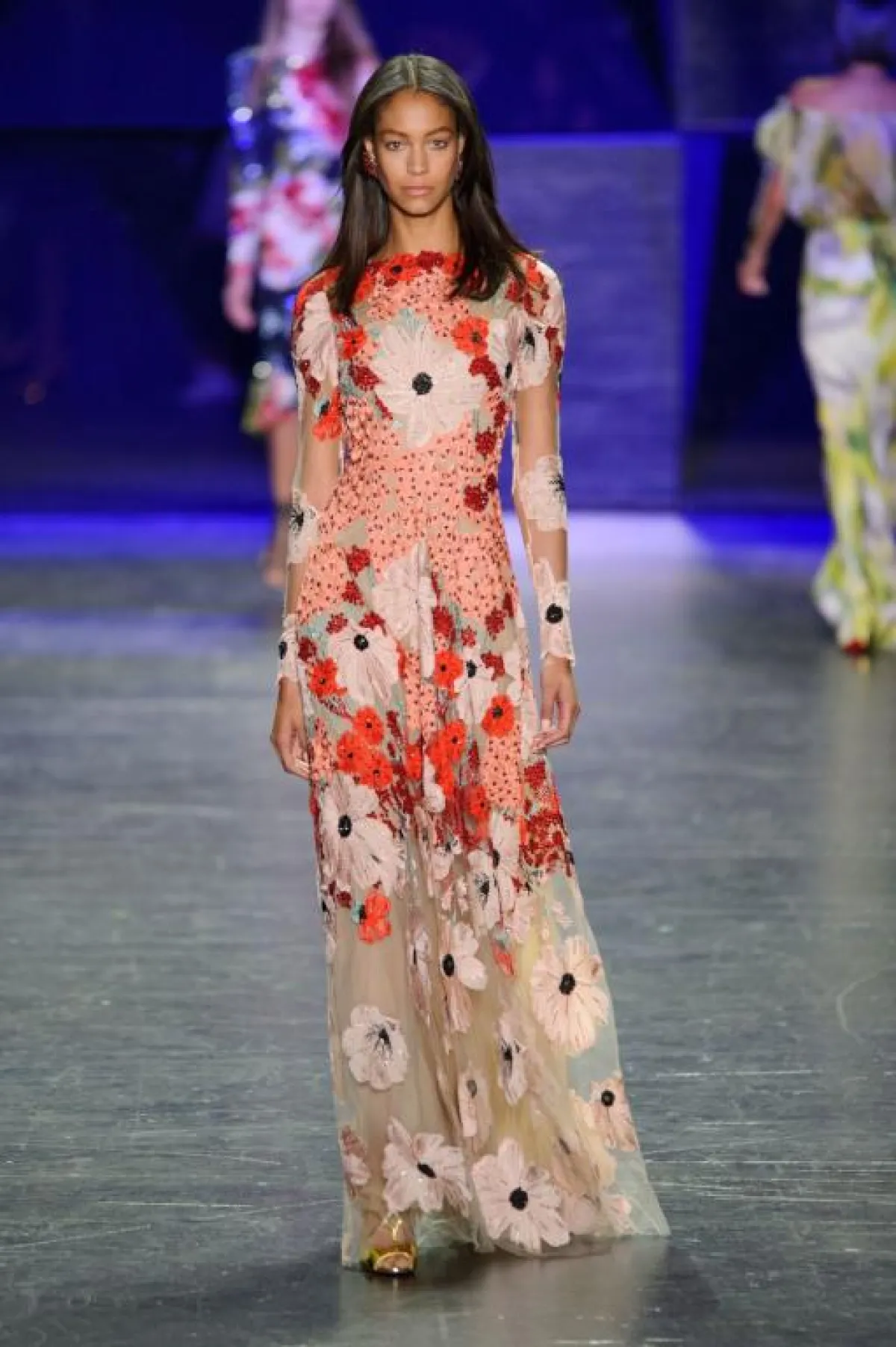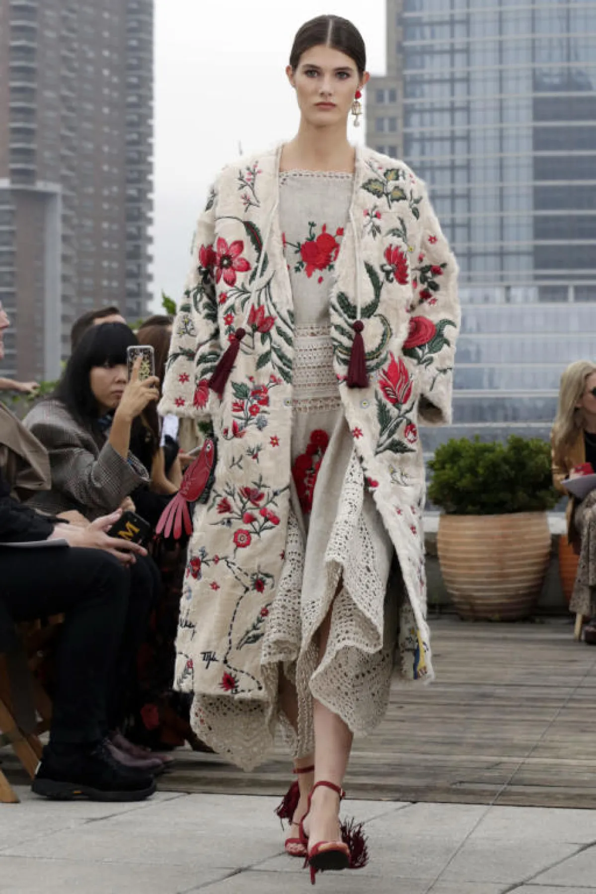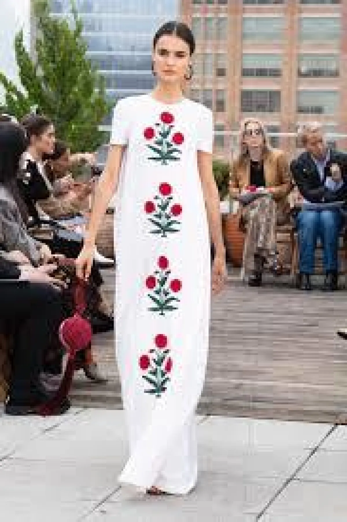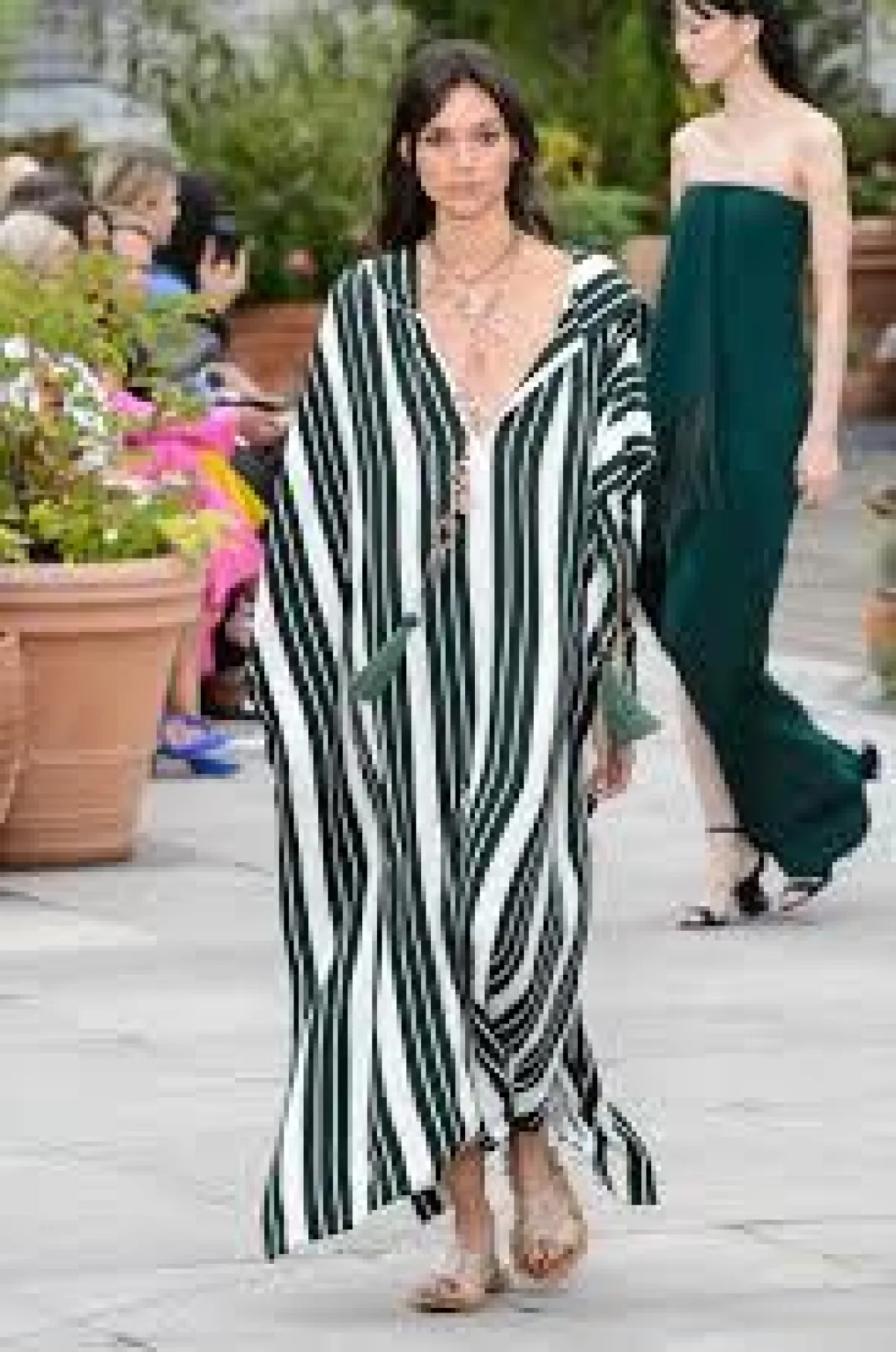 وفجأت دار وأوسكار دي لا رنتا Oscar de La Renta الجميع بموديلات محتشمة تشبه القفطان العربي تماماً، حيث جاء التصميم مزين بغطاء رأس مستلقى على الظهر، أما الأكمام فميزها تصميم فضفاض، وذهب إلى منطقة أكثر شرقية بتصميم جلباب طويل أبيض مزين بالزهور الحمراء، ولم تقتصر تصاميمه المحتشمة عند الجلابيات أو القفاطين، بينما قدم موديلات مكونة من قطعتين بنفس اللون أو النقوش، تغطي الجسم من الكتف إلى القدمين سواء ببنطلون فضفاض أو تنورة، وتمتاز هذه التصاميم أنها اختيار مناسب للمرأة العربية لإطلالات العمل.
