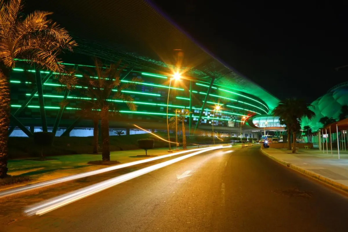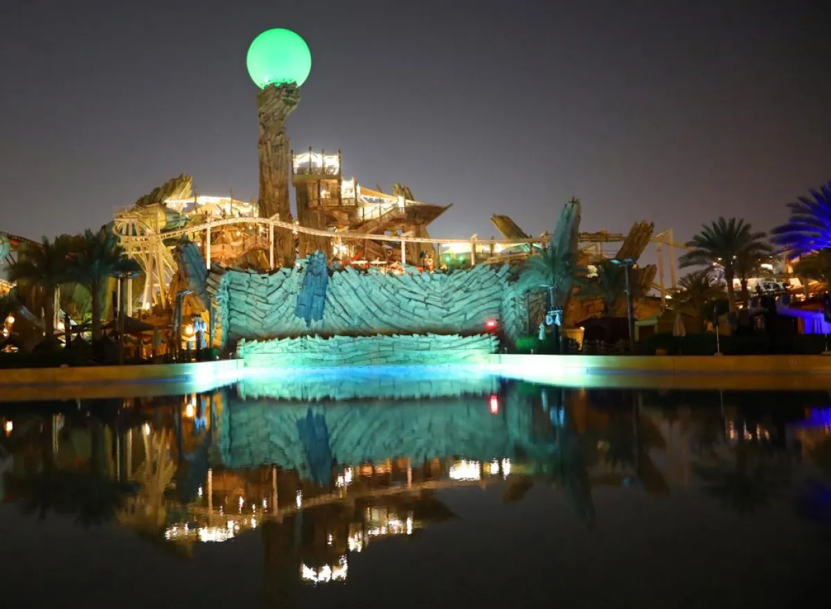 جزيرة ياس تزينت باللون الأخضر احتفالاً باليوم الوطني السعودي