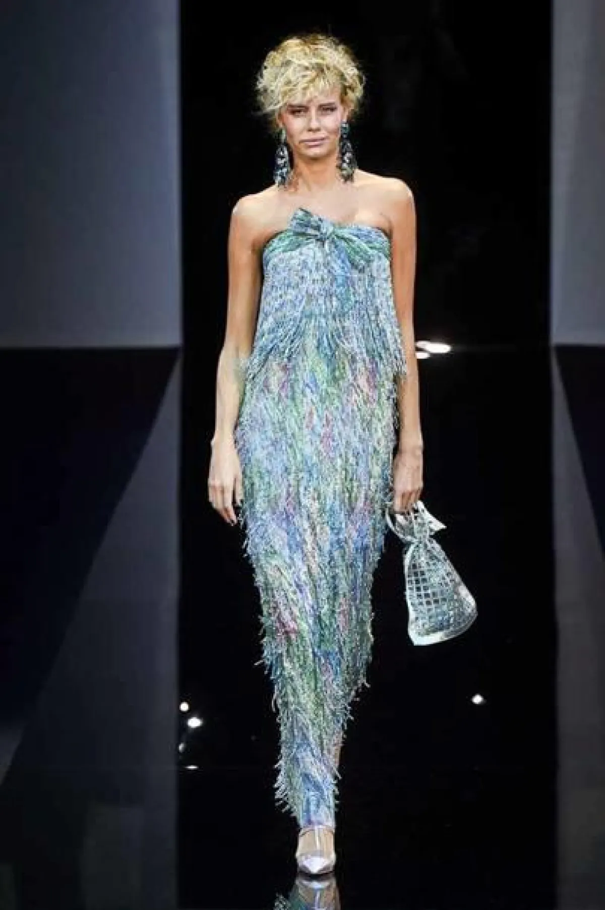 الاكسسوارات التي شاهدناها في عرض دار جيورجيو ارماني Giorgio Armani بدت عصرية الى حد بعيد وتماشت بشكل مثالي مع التصاميم، وقد لفتتنا الأحذية البلاستيكية الشفافة، وحقائب اليد البراقة، والأقراط الكبيرة باللون الفضي المستقلبي.