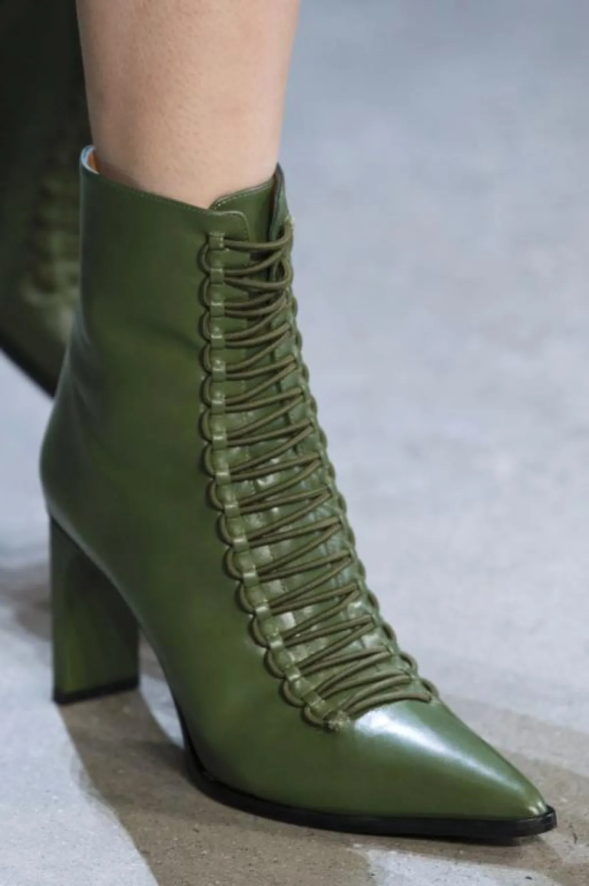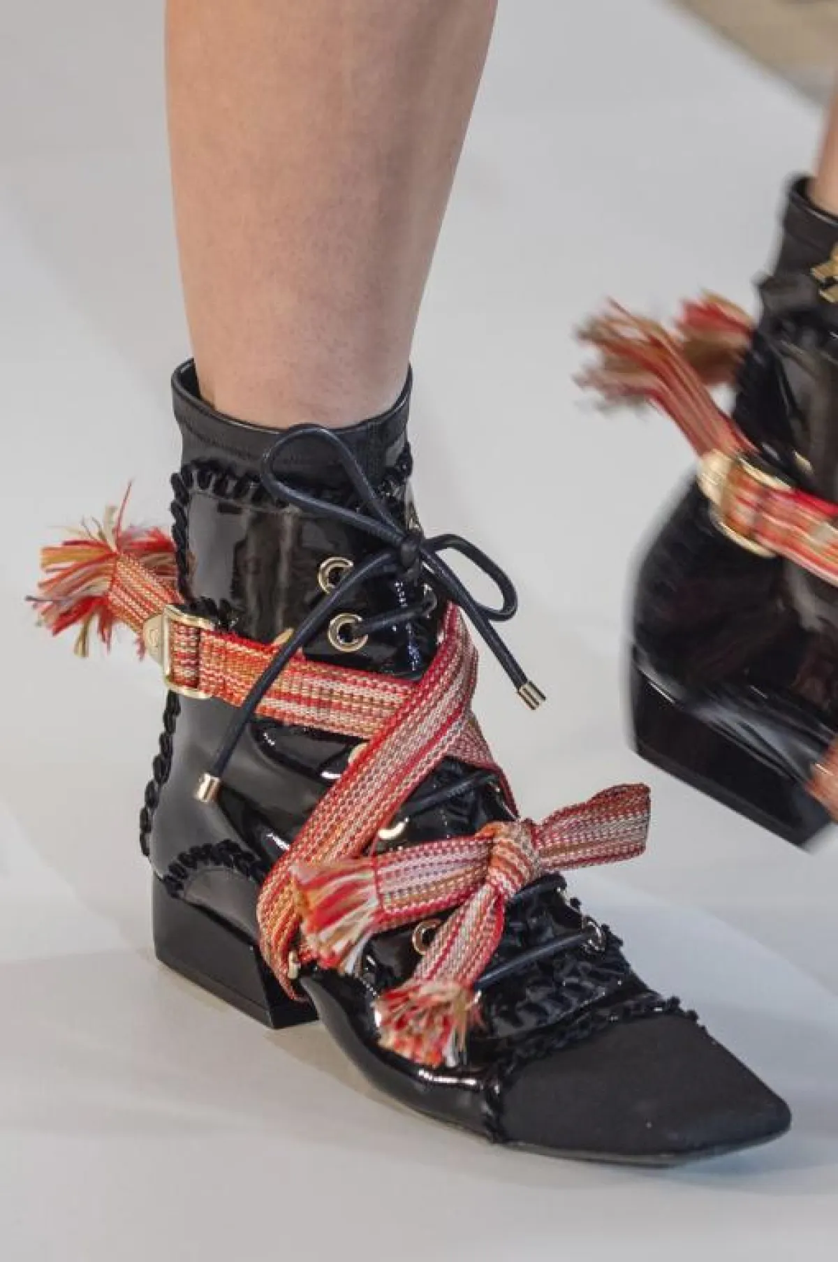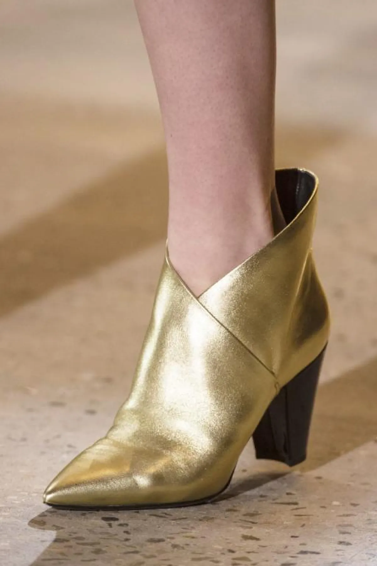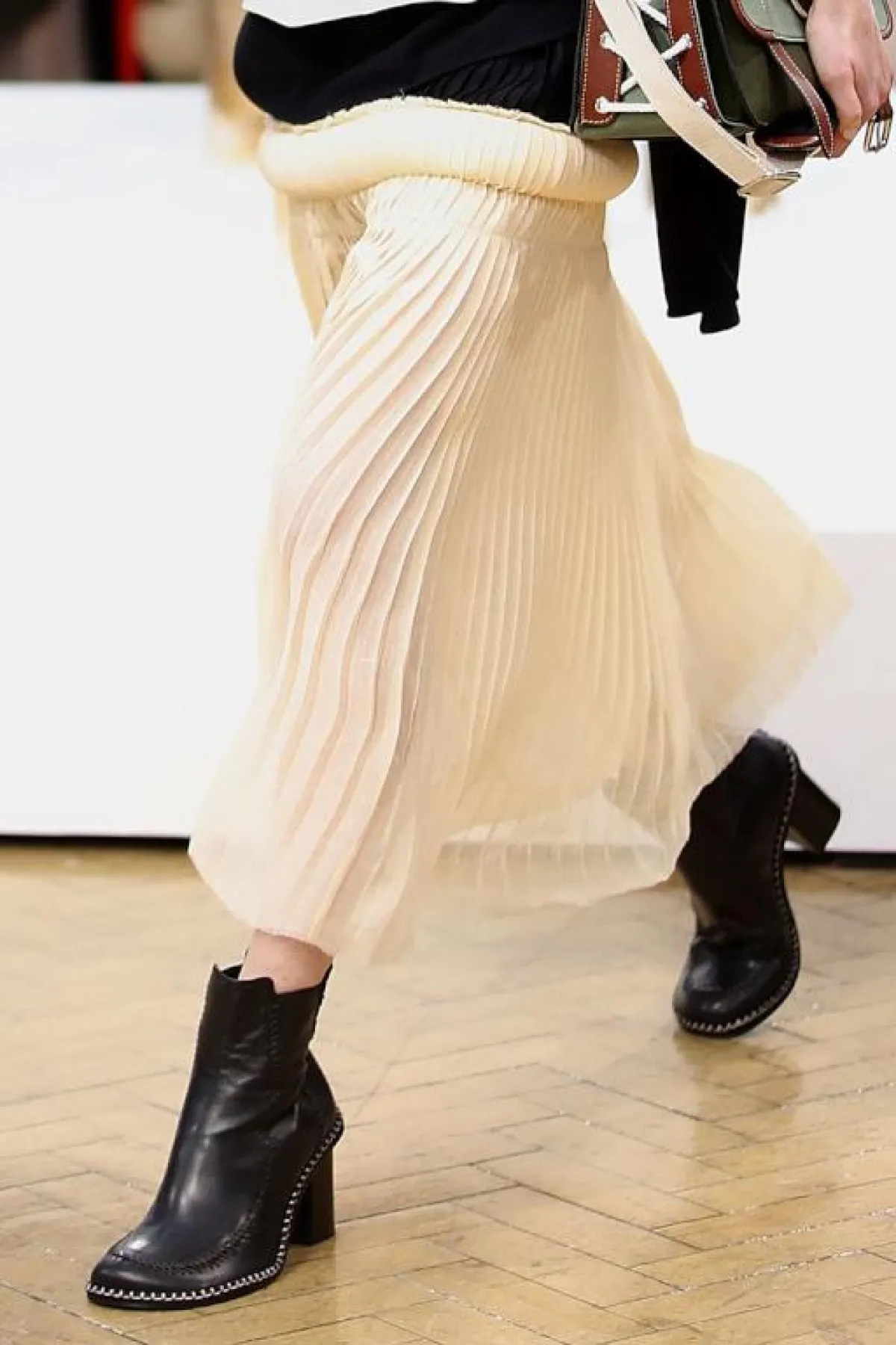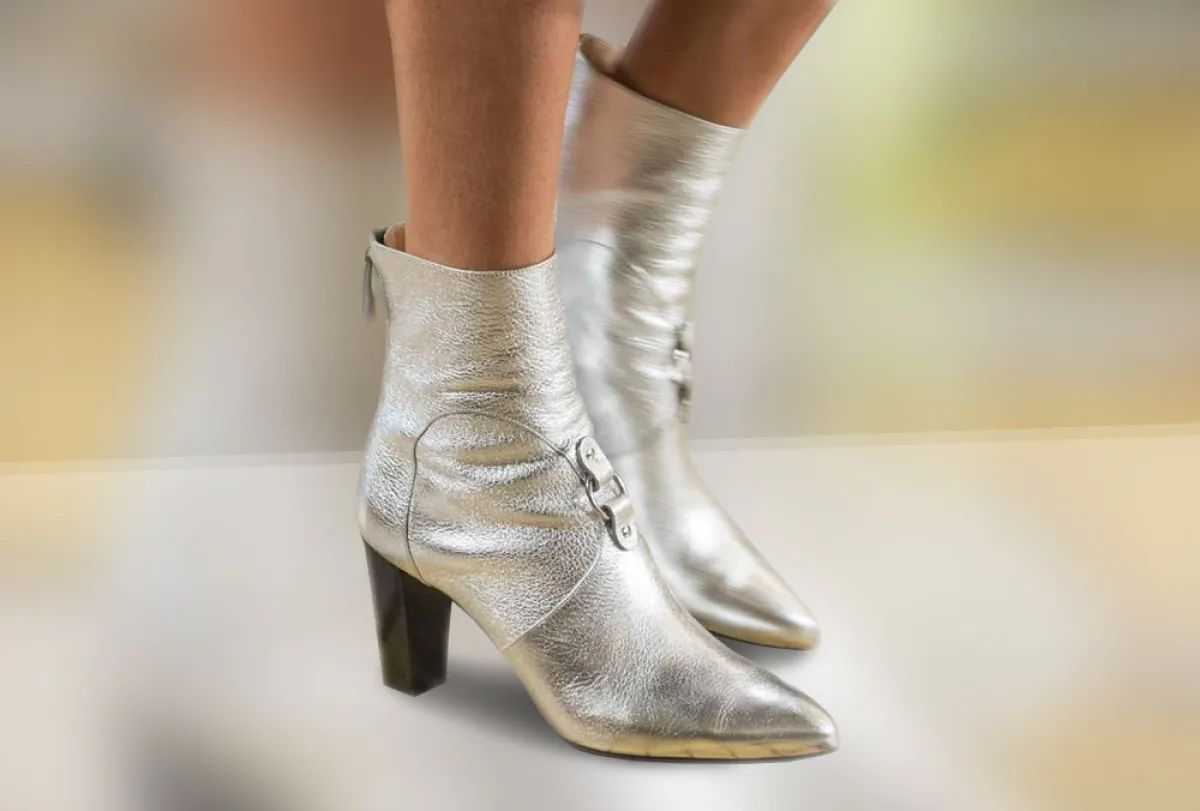 اختارت دار أزياء Altuzarra ألتيزارا العودة إلى زمن التسعينات والثمانينات فاستوحت حذاء الكاحل الميتاليك الفضي، مع كعب أسود سميك متوسط الطول و سحاب خلفي.