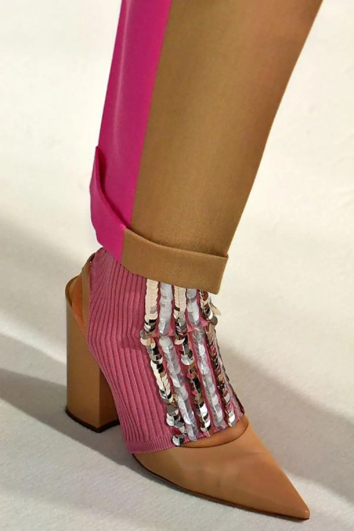 لإطلالة مريحة، نسقيه مع البدلة العصرية ذات البناطيل الواسعة بالألوان الجريئة كالبنفسجي و الأحمر، أو مع الفساتين القصيرة الميتاليك للمناسبات الليلية البسيطة وجورب شفاف أسود.
