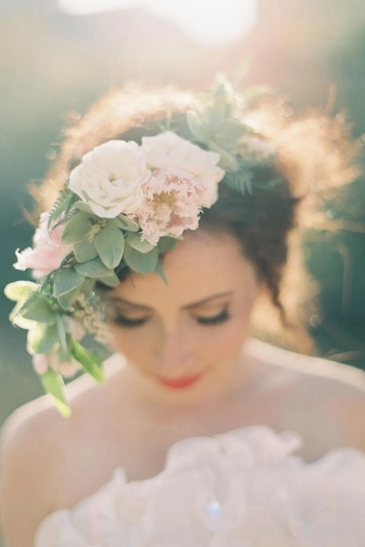 أعجبنا طوق الورد الاخضر بالكامل، مع رباط الخوص أو المصنوع من اللحاء، ضعيه على رأسكِ، واربطيه به الطرحة من الخلف، وننصحكِ بأن تبتعدي هنا عن الطرح المطرزة، التي لا تتماشى مع ستايل الطوق، يمكنكِ اختيار التول أو الدانتيل الناعم.