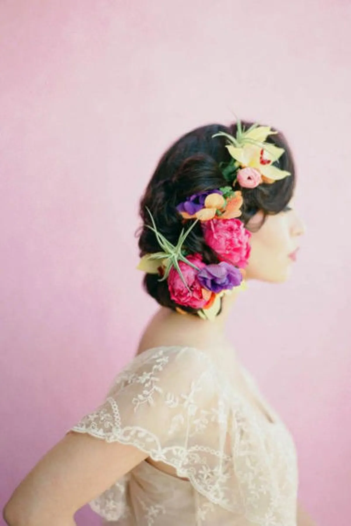 أو أن تعتمدي على الألوان الدارجة هذا العام، كالورود البنفسجية اللون مع الفروع الخضراء، أو كالورود الروز، بخاصة وإن كنتِ ستعتمدين مكياجًا بسيطًا مع أحمر الشفاه اللامع بالدرجات الوردية.
