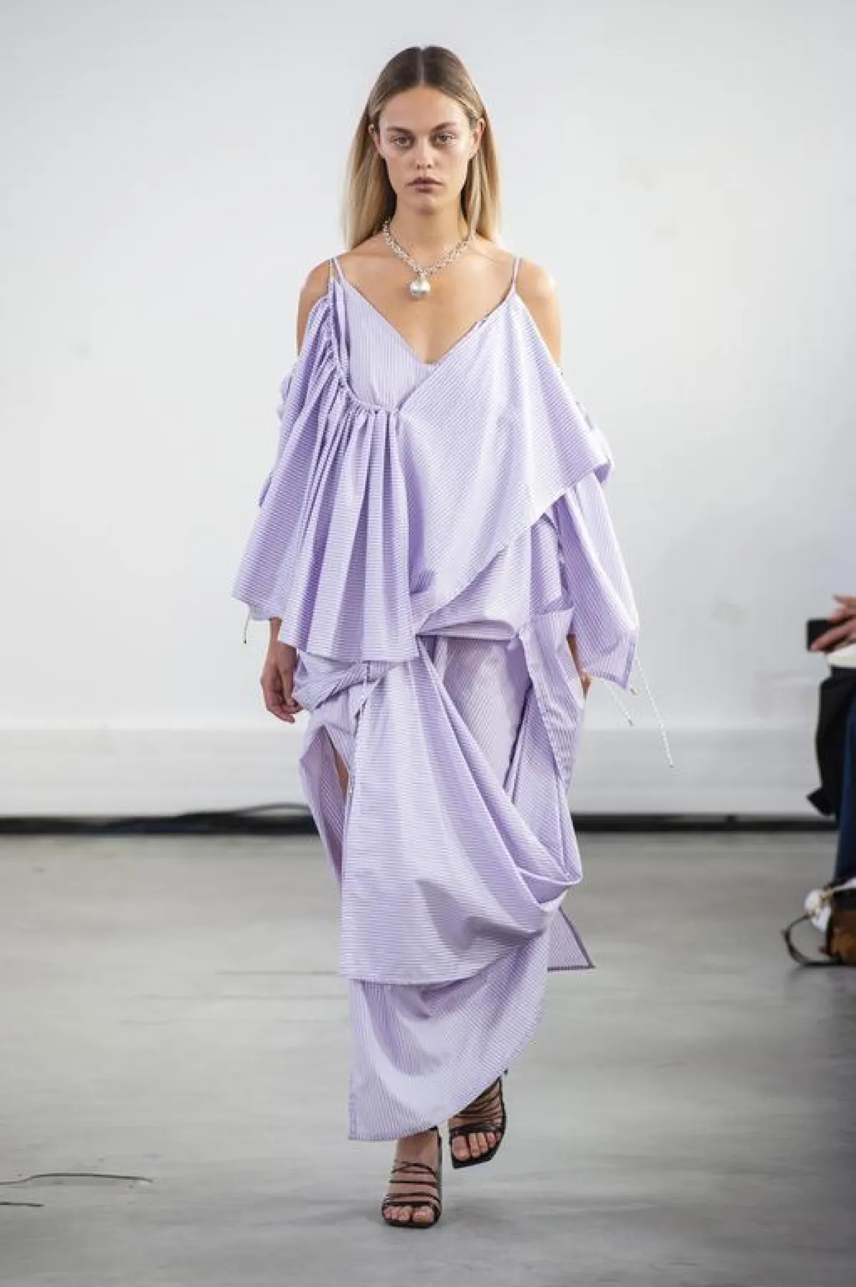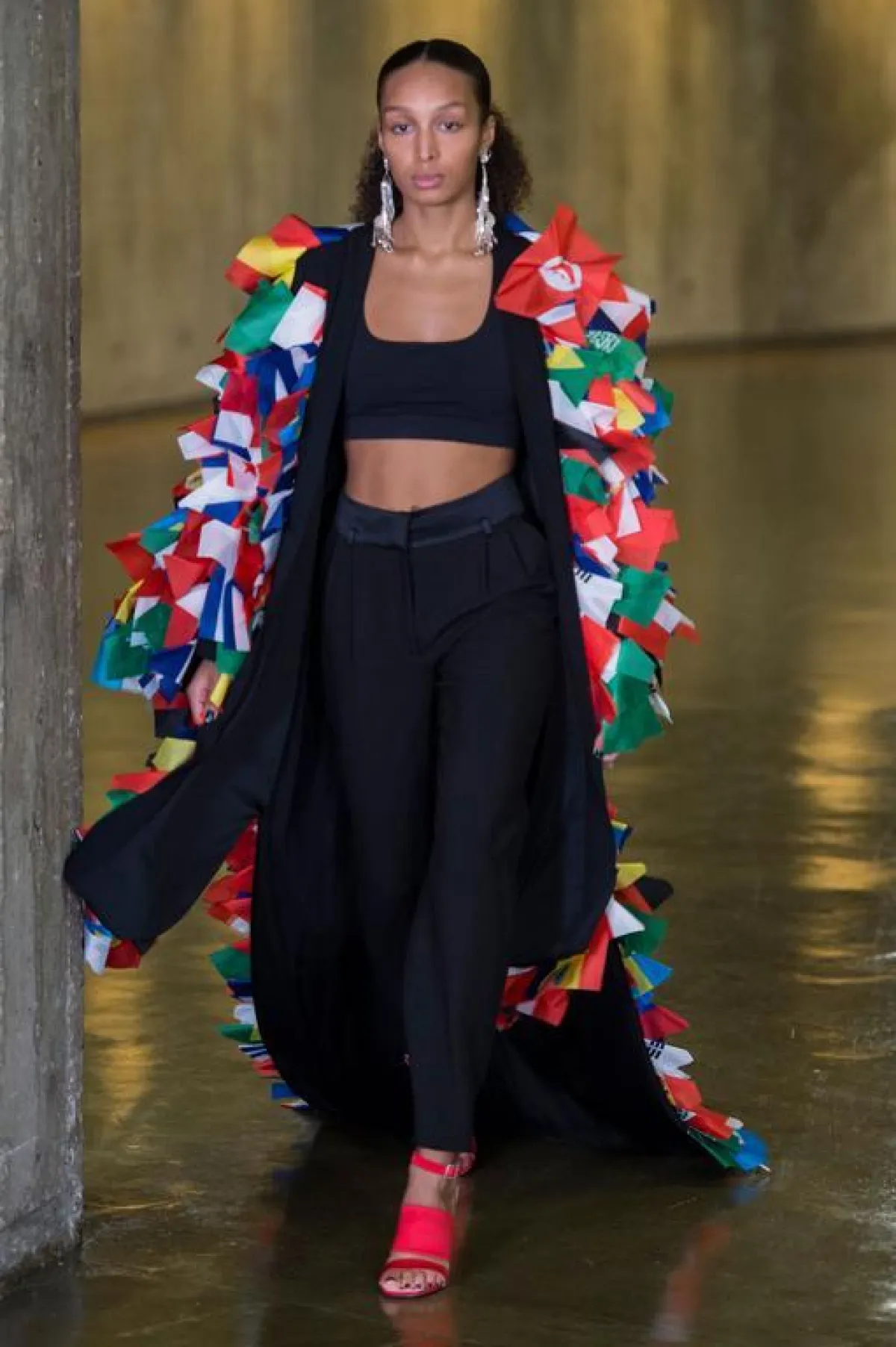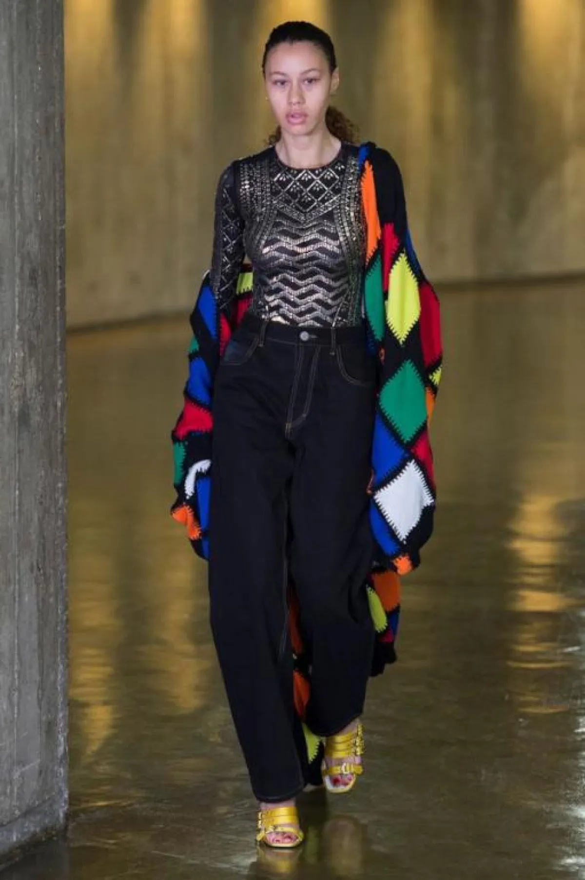 كان عرض سان لوران Saint Laurent العرض الأهم والذي انتظره عشاق الموضة يوم أمس، فعلى ضفاف بحيرة اصطناعية تحذوها أشجار النخيل المضيئة غطت ساحة " تروكاديرو " وبمحاذاة برج ايفل، تهادت العارضات بخطوات جريئة وبأزياء غاية في الأنوثة ، بقي المصمم البلجيكي أنطوني فاكاريلو Anthony vaccarello وفيا لهوية الدار ، حيث طغى اللون الأسود على العرض ، أما الأزياء فتنوعت ما بين التايورات ذات الجاكتات المحددة التفاصيل الا أن البنطالون ع عوض بشورتات قصيرة من الجلد و الدنيم والتي غلبت على معظم اطلالات العارضات ،كما عرض مجموعة من الفساتين القصيرة التي زينها بتفاصيل جمالية راقية أضاءت العرض ، تجسدت في رسومات النجوم الذهبية و الفضية المبعثرة على الفساتين هنا وهناك ، نسقت تارة بصنادل صيفية ذهبية اللون وتارة أخرى بأحذية جلدية عالية ، كما كسر حدة اللون لأسود بلمسة من الألوان الصارخة وخاصة الأحمر والأخضر ، وقد وضع المصمم أنطوني فاكاريلو لمسة من " الهبي شيك " Hippie Chic على العرض تجسدت هذه اللمسة في القبعات وربطات العنق و كذلك أشرطة الرأس ولنظارات الشمسية.