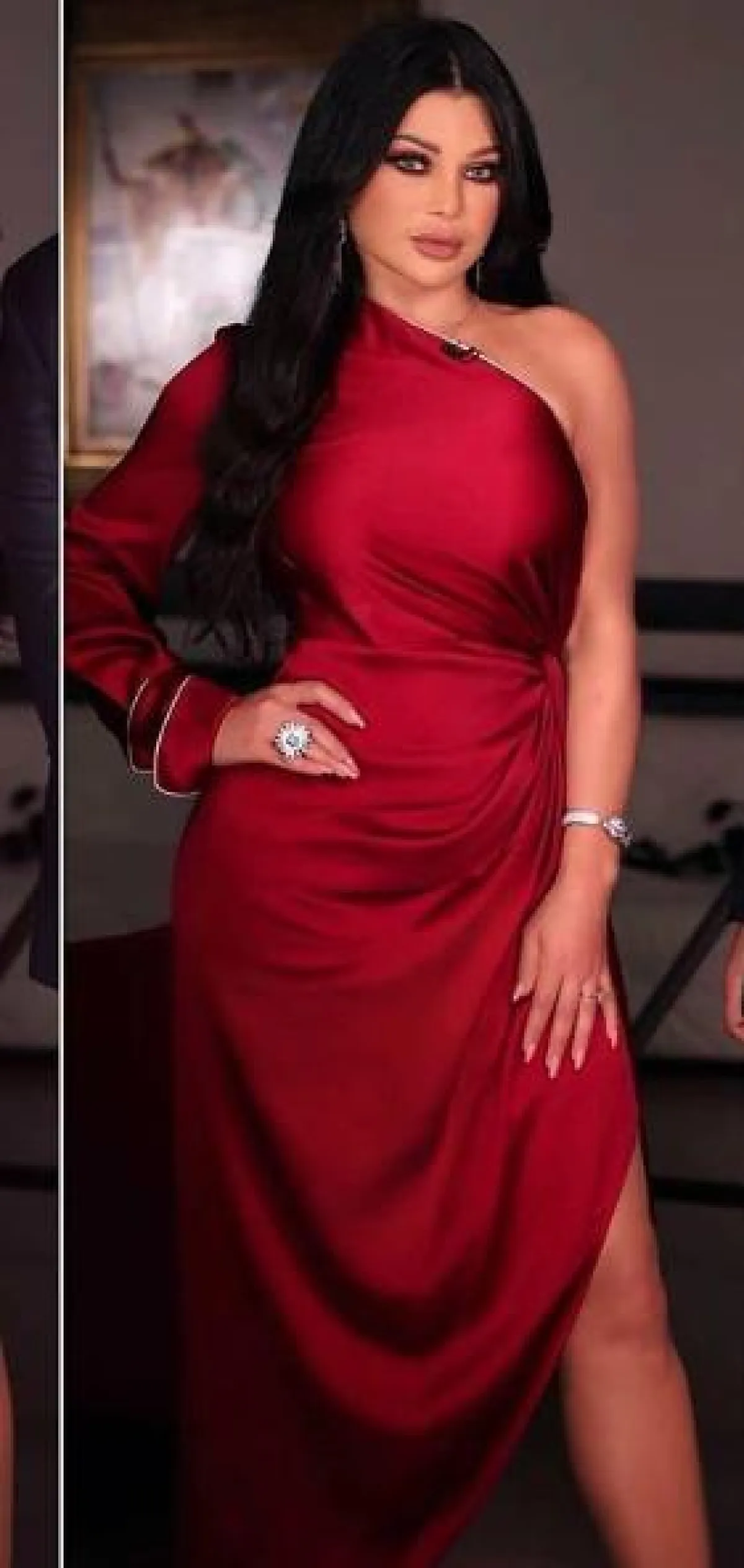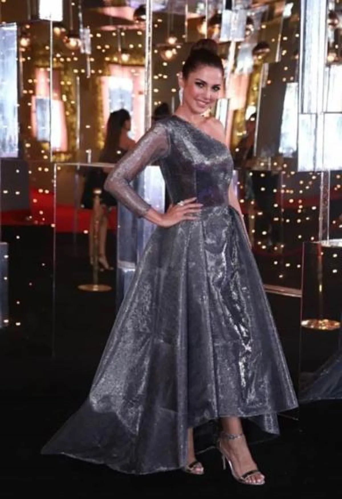 هيلدا خليفة في فستان ميتالك بقصة الكتف الواحد: