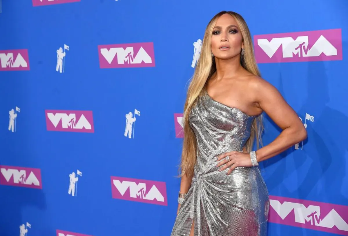 جنيفر لوبيز Jennifer Lopez شاهدناها في فستان بقصة الكتف الواحدة على السجادة الزهرية الخاصة بحفل الـ VMA اختارته من دار “فيرساتشي” Versace، وقد ناسبها من ناحية القصة واللون، وقد نسقت معه شنطة يد باللون الفضي، ومجوهرات ماسية لافتة.