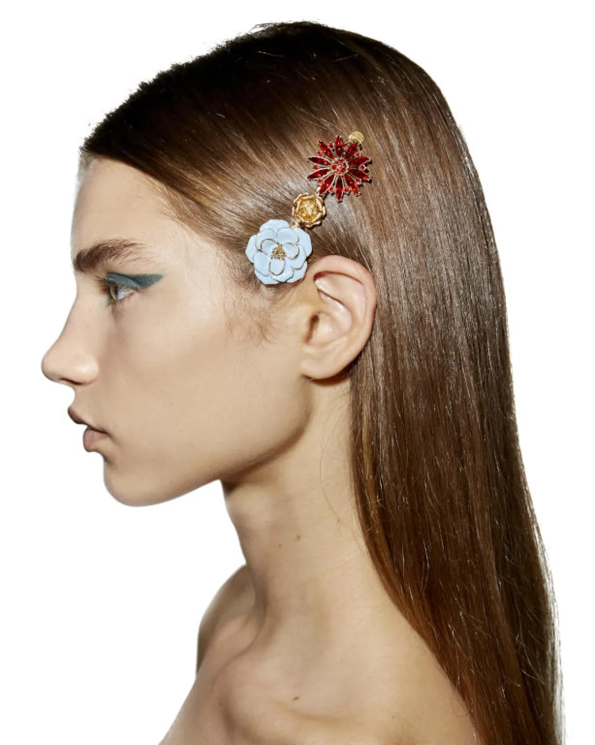 إن تسريحة الشعر التي ظهرت بها عارضات دار فندي Fendi، من تصميم Sam McKnight، شكلت عودة للتسريحات الطفولية، وهي تسريحة كعكة التويست العالية، إلا أنها تسريحة عملية جداً وأنيقة وتناسب المرأة العاملة ونمط حياتها السريع. دار دولتشي آند غابانا بدورها، اعتمدت تسريحات شعر مرفوعة ومزينة ببوندانا ملون تكسوه الورود، مع خصلات الشعر المنسدلة على جانبي الوجه، إضافة الى التسريحات المنسدلة المزينة أيضاً بالورود الكبيرة والملونة. فيما اعتمدت ماكس مارا تسريحة الضفيرة الطويلة والمنخفضة، يميزها الشعر المشدود الى الخلف مع الفرق الوسطي.
