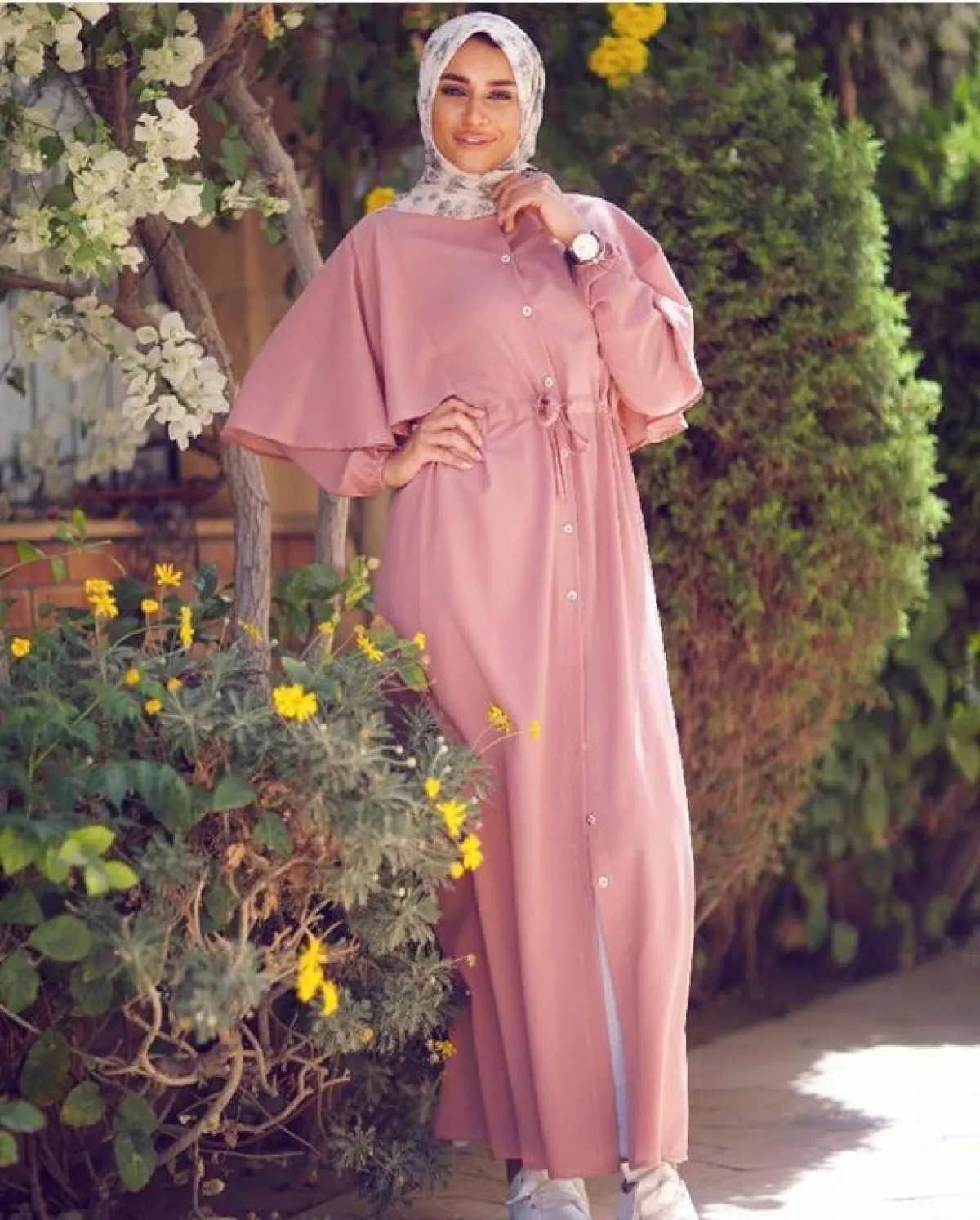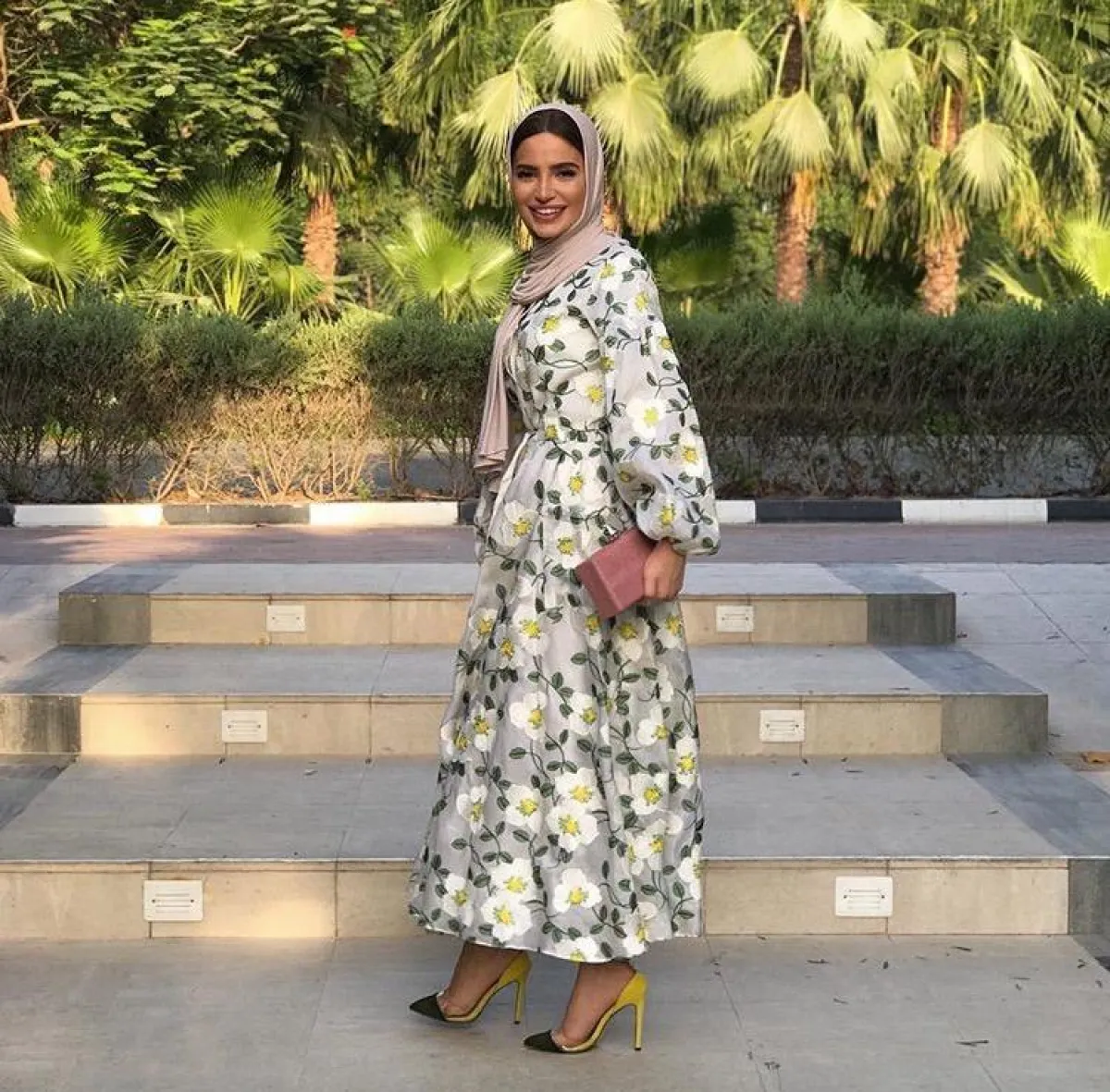 بينما اختارت المدونة فاطمة حسام فستان فلورال مع تشجيرات الورود باللون الأخضر، وحزام الخصر، لاطلالة صيفية نهارية بامتياز، نسقت معه حذاءً مدبّبًا على شكل مثلث من الأمام، وبلاستيكيًّا من الجانبين، وحجاب نيود يناسب الكثير من أوقاتكِ طوال النهار، كما يستمر معكِ للّيل أيضًا، ويمكنكِ الاستغناء عن الكعب وارتداء حذاء أنثوي أرضي، لن يضر بمظهرِك.