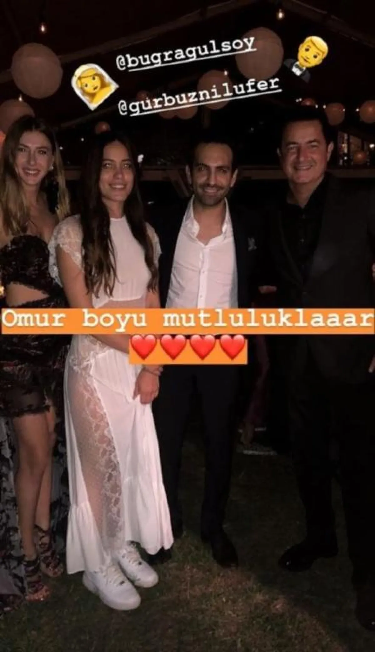 وكان من أبرز الحضور أصدقاؤه وصديقاته من المشاهير: أوزغي أوزبيرنتشجي الشهيرة بألما، وشريكة العريس بمسلسله الناجح "الحب مجدداً"، والممثلة بيراك توزوناتاش إحدى بطلات الموسم الرابع من "حريم السلطان"، ودولوناي سويسرت، والممثلة سيلين شكرجي.