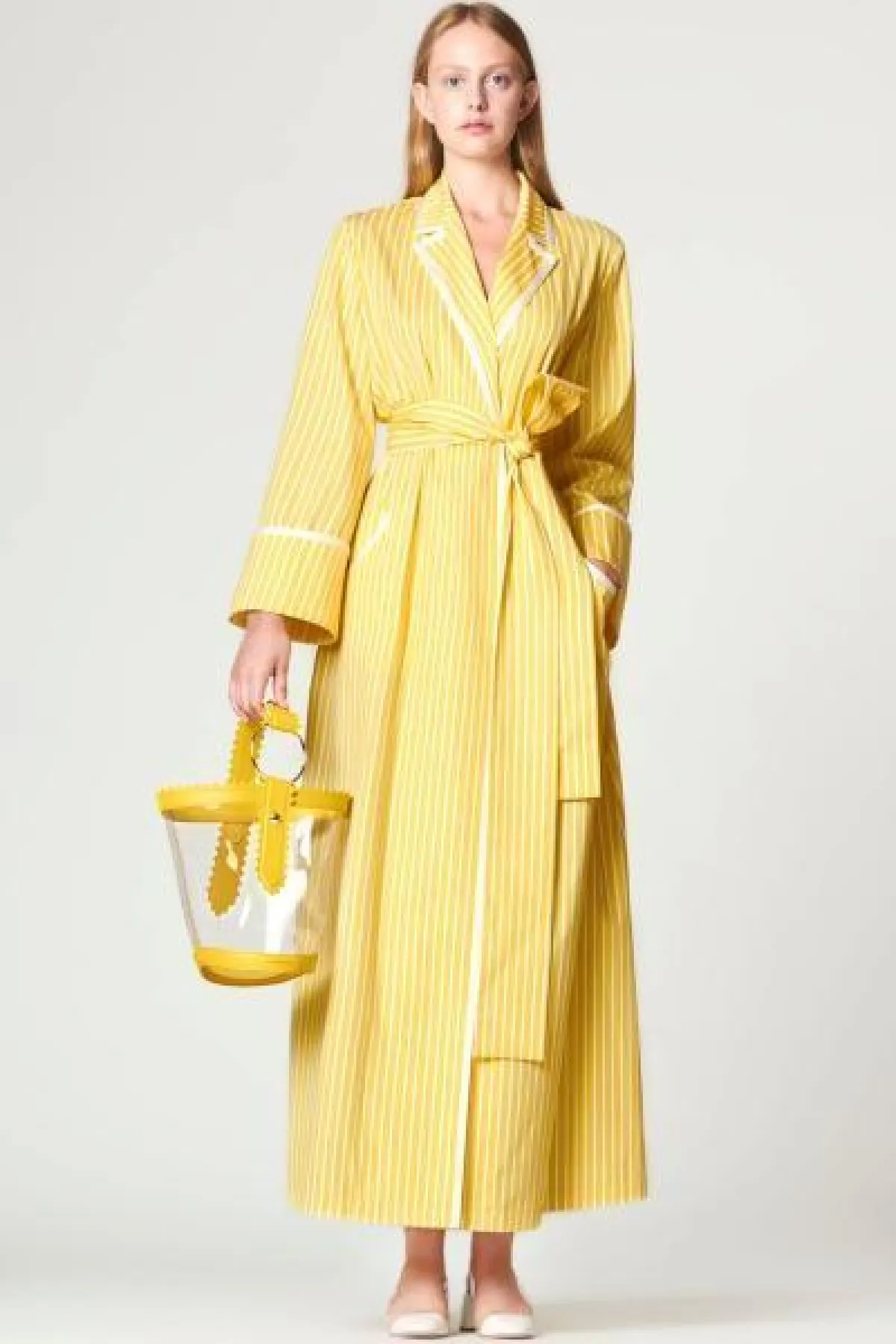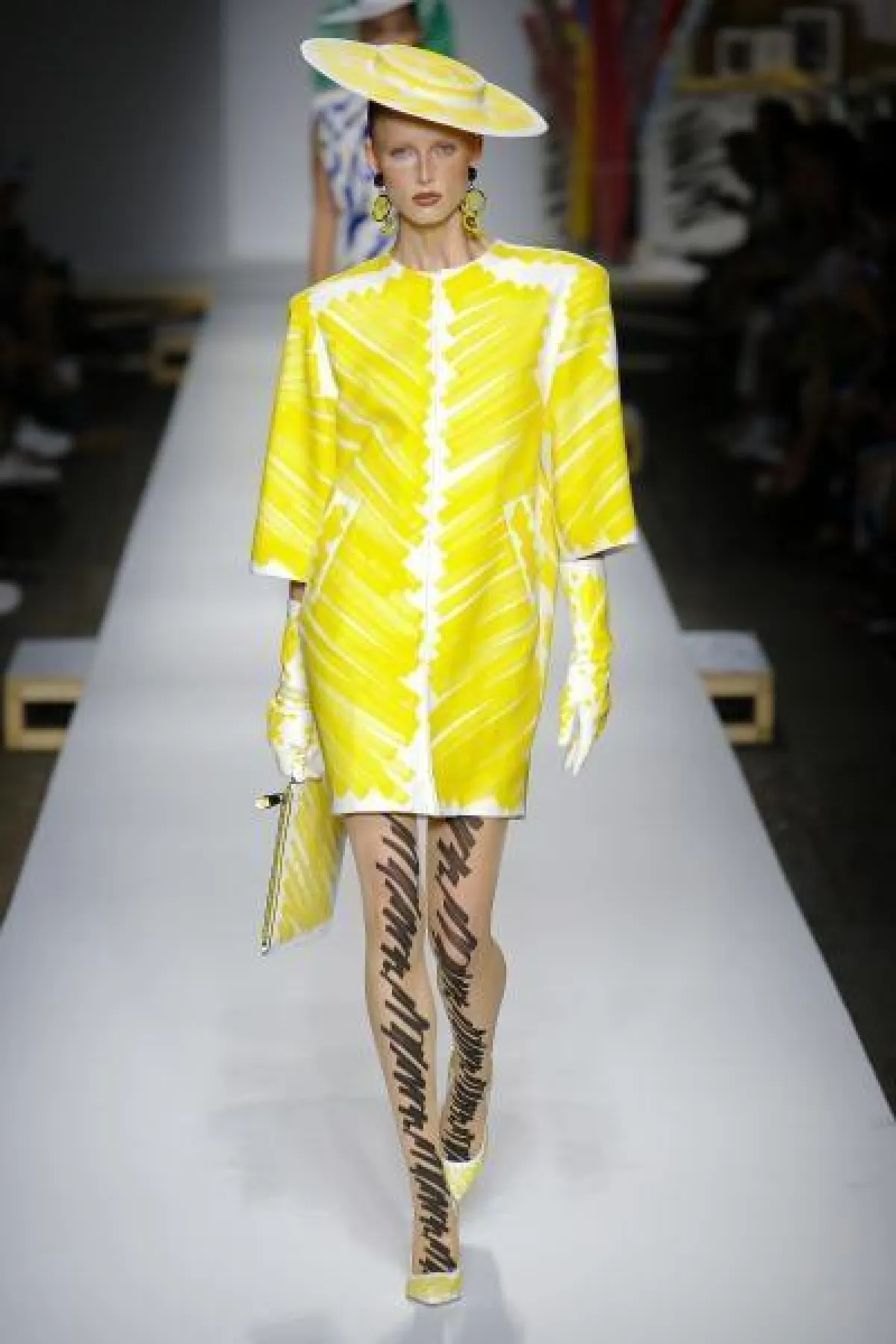 - بقى الفستان بموديل المعطف واحد من التصاميم الكلاسيكية التي أستمدت فخامتها من كونها أرتبطت بإطلالات دوقة كامبريدج، وقدمتها ماركة موسكينو Moschino بألوان فرحة أجملها الفستان الذي يمزج بين الأبيض الناصع والأصفر الكناري، تممي هذا اللوك بقبعة من نفس اللون لإطلالة ملكية.