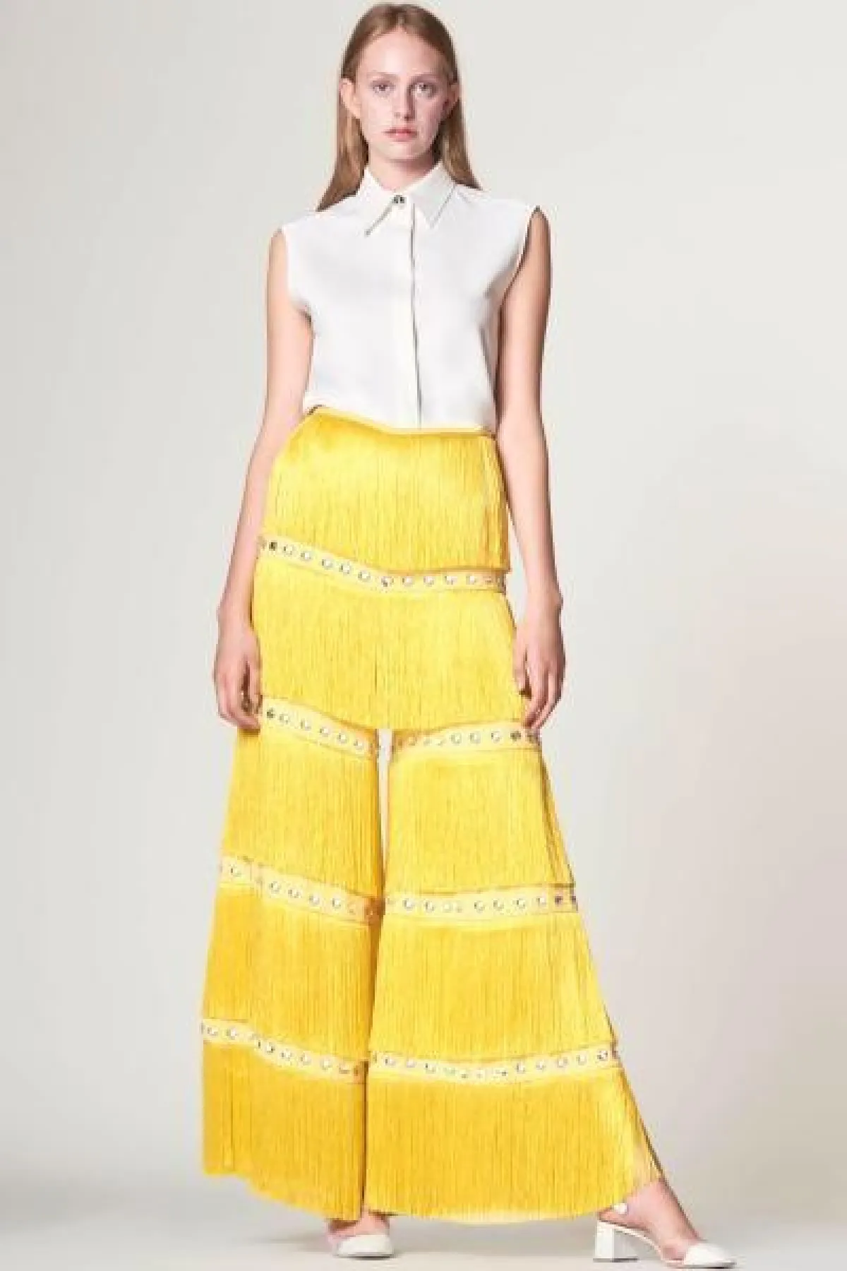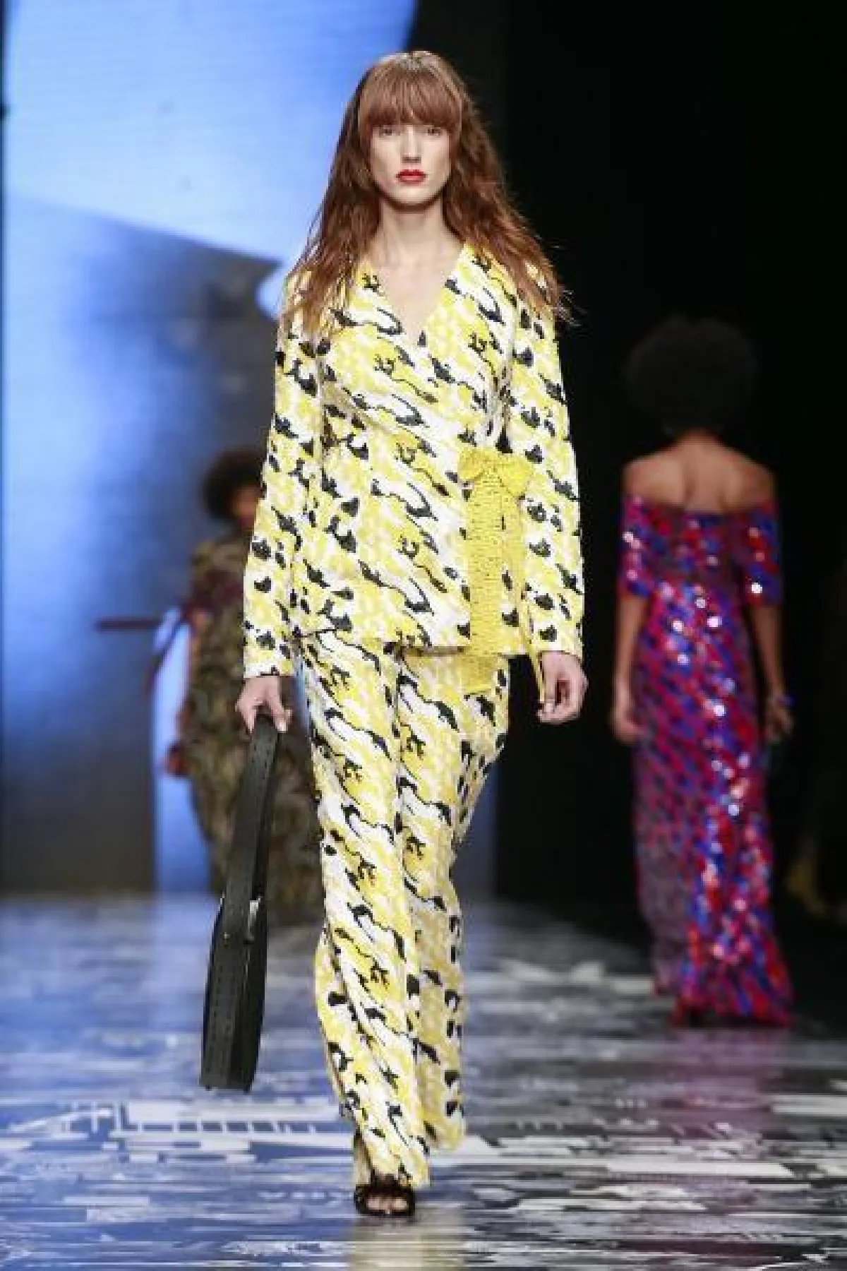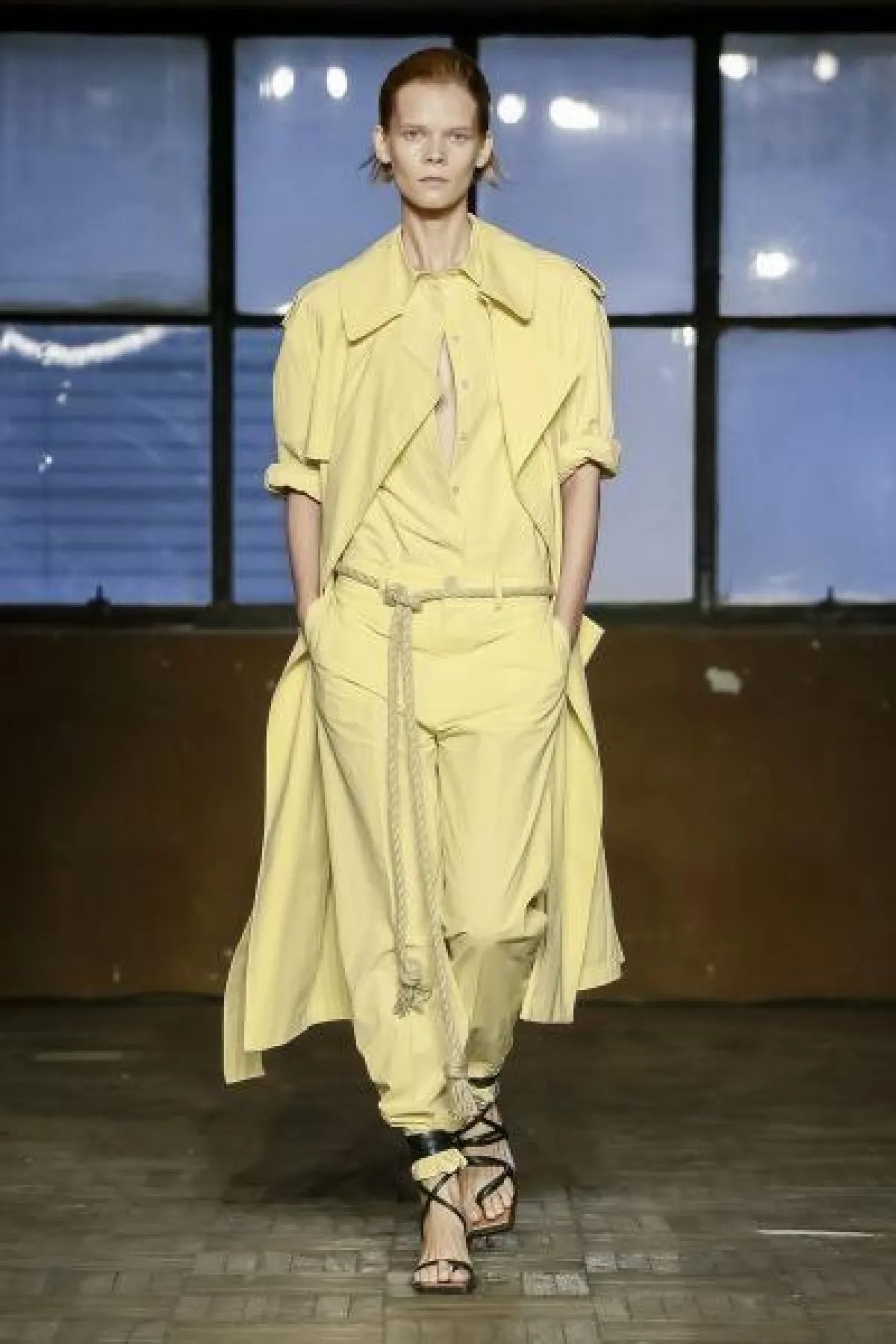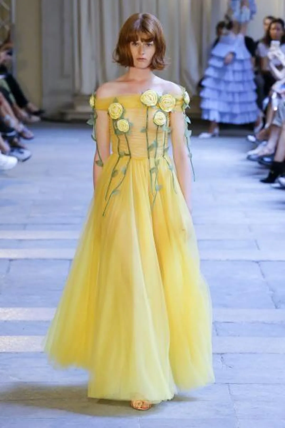 - خصصت ماركة ماكس مارا Max Mara جانب كبير من عرضها للأزياء الصفراء، فلفتنا الفستان الذي تألقت به كايا جربر والمزين بكشاكش أشبه بستايل الـ Peplum والتي يُنصح بها لإخفاء بروز البطن، وأكملت الطلة ببليزر طويل بأكتاف عريضة يمكن تنسيقه بمفرده مع إطلالة كاجوال.