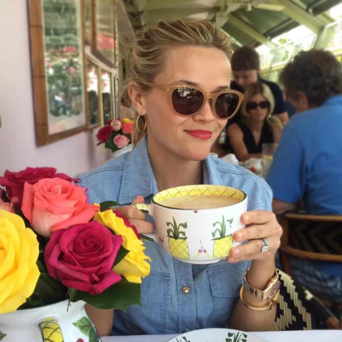 دائما ما تشارك الممثلة الأمريكية ريس ويذرسبون الحائزة على الأوسكار جمهورها على مواقع التواصل الاجتماعي صوراً لها وهي تستمتع بالقهوة، وفي هذه الصورة، تظهر ويذرسبون وهي تحمل فنجاناً ضخماً من القهوة أشبه بوعاء للحساء.
