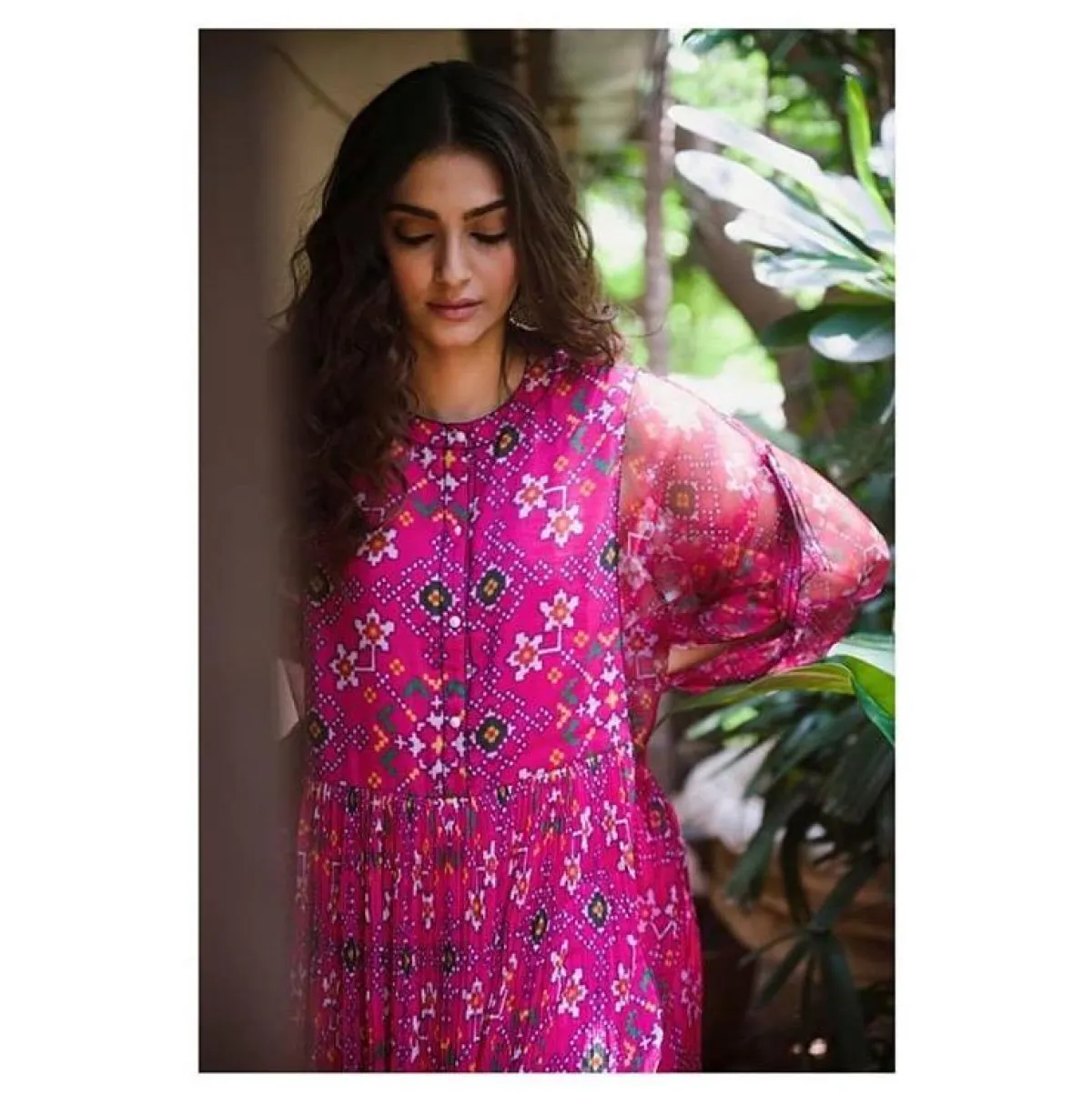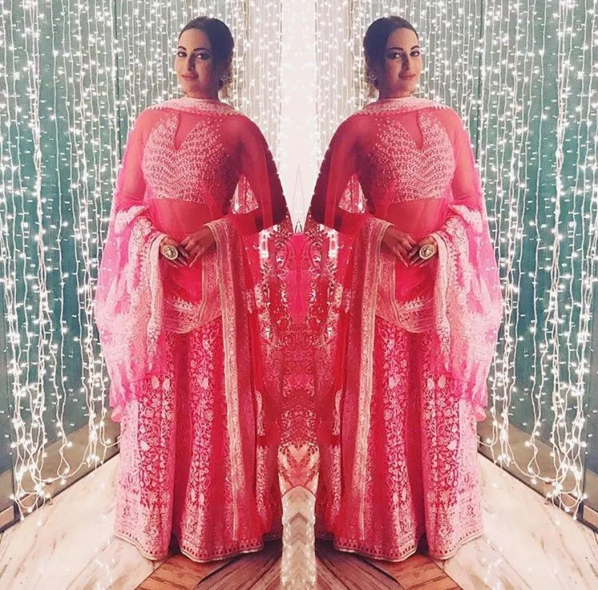 الساري الهندي معروف بتصاميمه المختلفة والفريدة، والمفضلة لدى الكثير من الصبايا، وتضامنًا مع مريضات سرطان الثدي، يمكنك الحصول على إطلالة مختلفة من Sonakshi Shinha سوناكشي سينها بالزي الهندي المميز، خاصة أن هذه الدرجة من الفوشي تناسب صاحبات البشرة العنبية التي تتمتع بها كثير من الفتيات في عالمنا العربي.