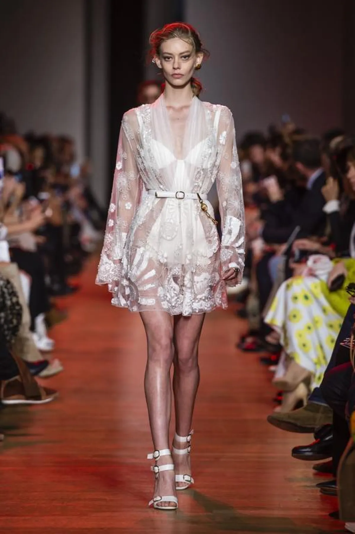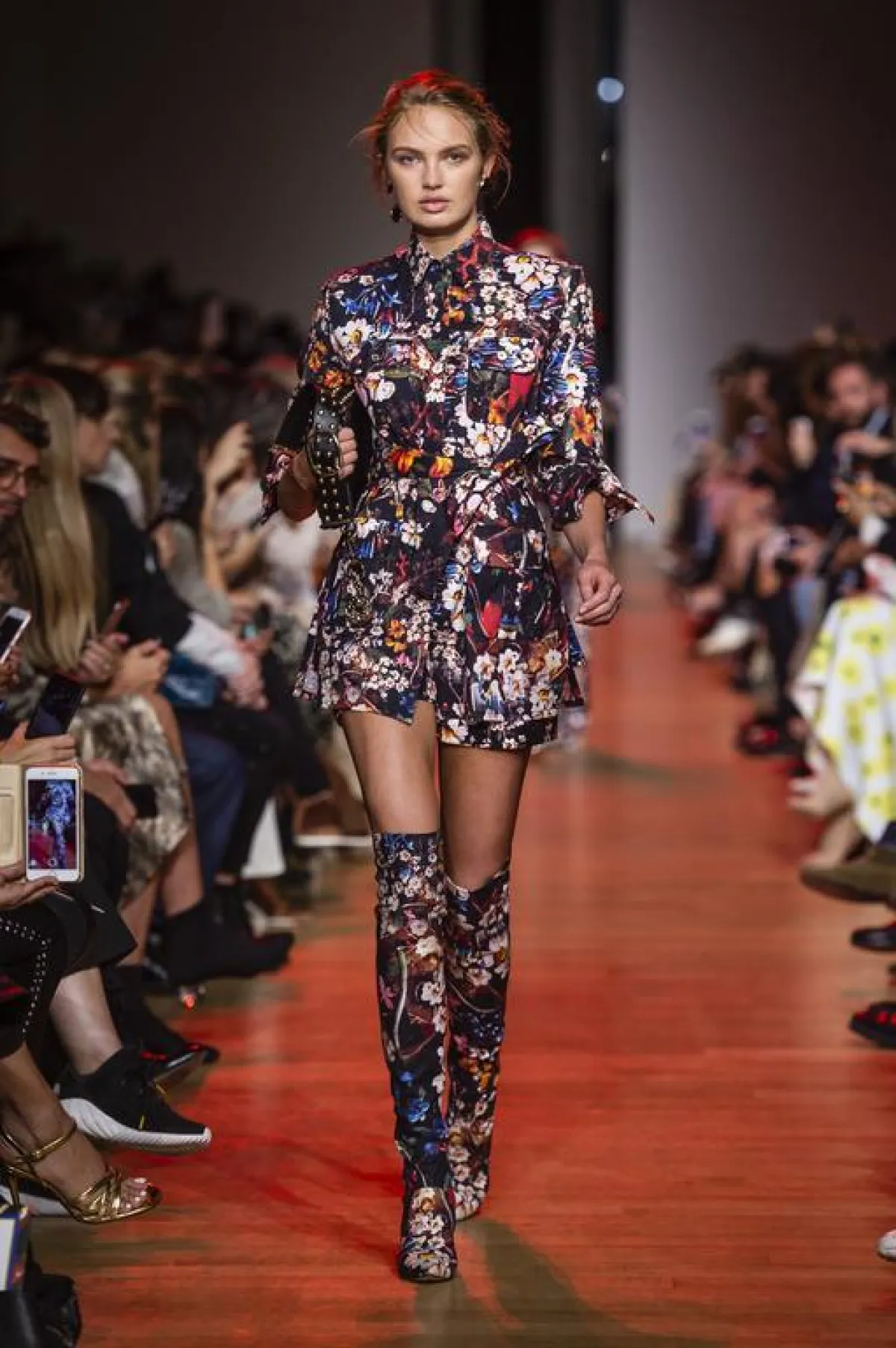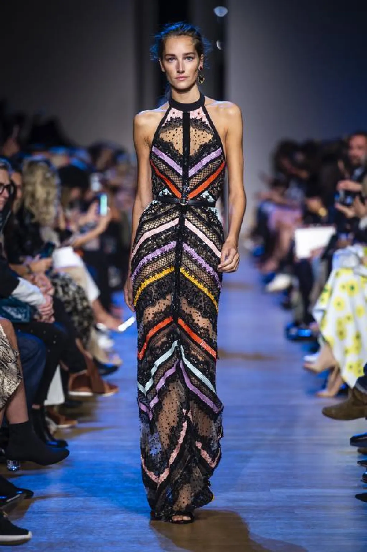 مرة أخرى، ينتزع المصمم اللبناني إيلي صعب إعجاب عشاق الموضة الباريسية. فقد قدّم عرضا في مستوى سمعته التي بلغت مصاف العالمية. وقد كان هذا العرض ربيعيا بامتياز، حيث غلبت عليه الفساتين الطويلة ذات القصات الفضفاضة والأقمشة المطبوعة بالورود الناعمة وأقمشة نقشة النمور. وقد نسق إيلي صعب هذه الفساتين، التي خطفت كالعادة أضواء الموضة الباريسية، ببوتات عالية تحمل نفس رسومات قامش كل فستان. كما تخللت العرض أيضا بدلات نسائية بيضاء اللون ذات قصات في غاية الأناقة، وفساتين قصيرة مصنوعة من الدانتيلا البيضاء.