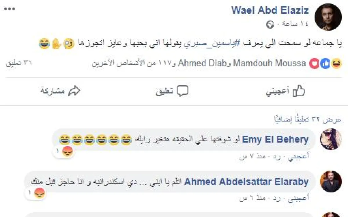 وقال وائل: يا جماعة لو سمحتم اللي يعرف ياسمين صبري يقولها إني بحبها وعايز أتجوزها، وتلقى بعدها العديد من التعليقات الإيجابية من جانب متابعيه الذين طلبوا أيضاً الزواج من ياسمين صبري بينما أبدت بعض الفتيات تحفظات حول مظهرها الحقيقي.