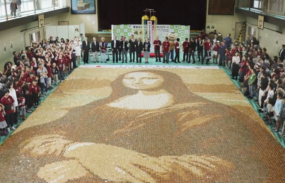 وفي تفاصيل هذا الخبر الفريد من نوعه، بأن سكان مدينة «سوكا» اليابانية، الواقعة شمالي العاصمة «طوكيو»، تمكنوا من تحقيقي رقم قياسي عالمي جديد، عن طريق رسم لوحة الـ«موناليزا» الشهيرة، للفنان الإيطالي «ليوناردو دافنشي»، ولكن ليس بالريشة والألوان وقماش الـ«كانفس»، بل باستخدام حلوى يابانية معروفة في البلاد يتم صنعها من الأرز.