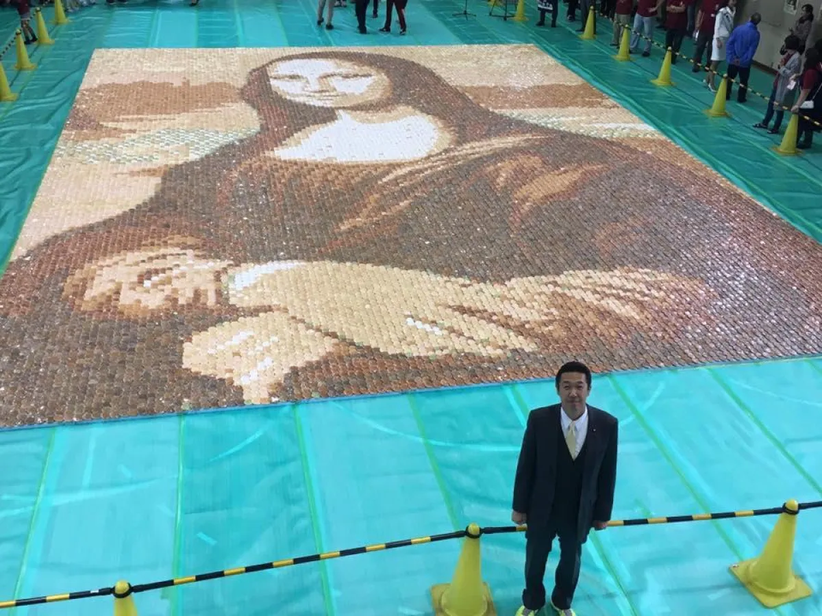 وبحسب ما نقله موقع «سبوتنيك sputnik»، أنه كان قد قام برسم لوحة «الموناليزا» هذه، ما يزيد عن 200 شخص من سكان المدينة اليابانية، حيث استخدموا حوالي 24 ألف قطعة حلوى يابانية شعبية تعرف باسم «سينبي»، وهي حلوى معروفة في البلاد ويتم صنعها من الأرز، تم طلاؤها بسبعة ألوان، ووصل طول اللوحة لحوالي 13 متراً وبعرض 9 أمتار تقريباً.