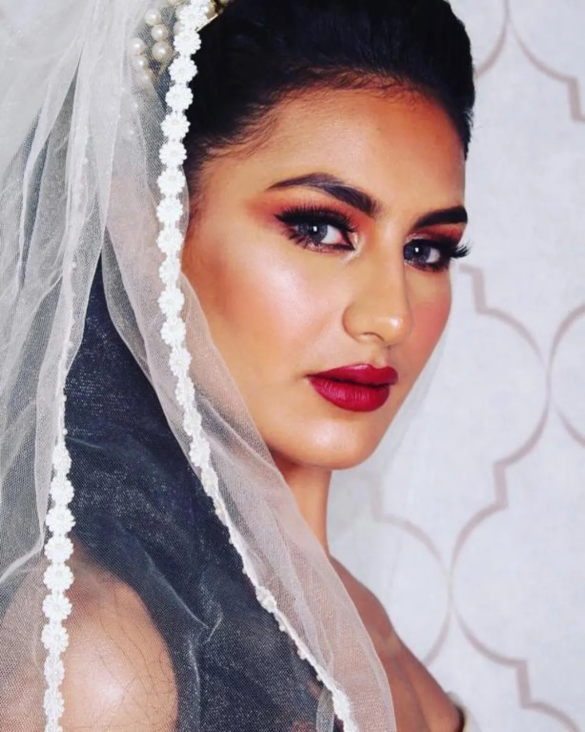 الشعر المتدرج يضيف كثافة وحجما لوجهك، يمكنك اعتماده بترك الشعر منسدلا على أحد الجانبين، والطرحة منسدلة منه، ولكن اعتمدي على تاج بسيط أو متوسط الحجم، ولا تختاري الحجم الكبير، حتى لا يبدو غير متناسق مع شكل وجهك.