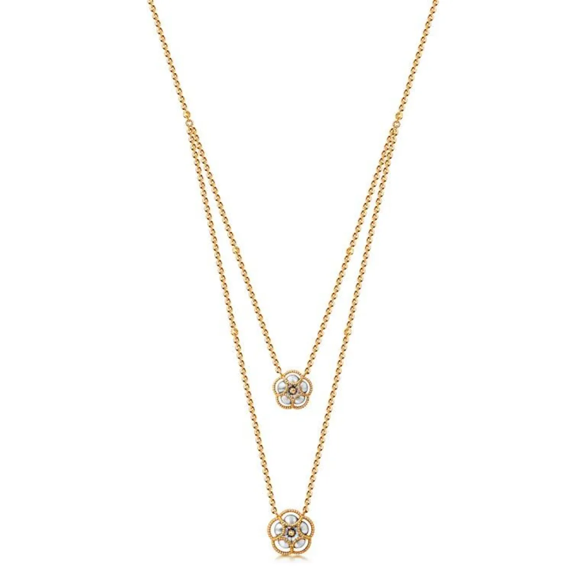 أما مجموعة "روزا" فهي تحاكي كنوز الطبيعة الجميلة والغنية بالزهور. تزدهر كل قطعة بأحجارها الرائعة والمقطعة يدويا لتتناغم مع الذهب لابتكار تصاميم أنيقة وملفتة للنظر. صممت بشكل يجمع بين الجاذبية والجودة العالية لتضفي لمسة مذهلة من الألوان والحياة على طلتك الرائعة. صممت "إيسنزا دي روزا" لتعكس الاتزان داخل كل امرأة.