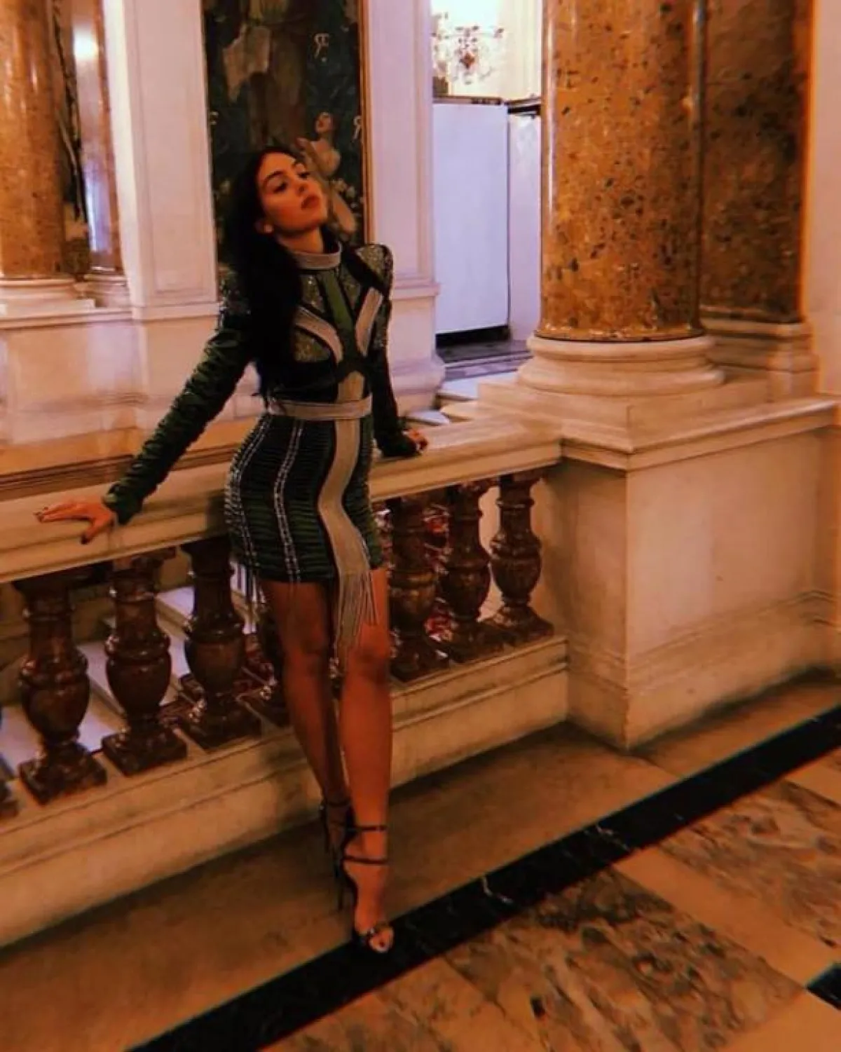 وتسابقت كاميرات التصوير على التقاط صور جورجينيا رودريجيز التي طغى على إطلالتها اللون الأخضر، وقامت هي بنشر العديد من صورها عبر حسابها الرسمي على موقع التواصل الاجتماعي "انستغرام".