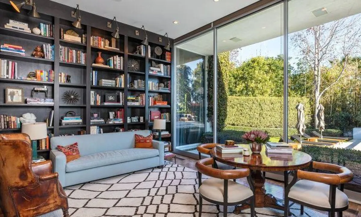 في فيلَّا الممثِّلة الأمريكيِّة جيسيكا ألبا الواقعة في "بيفرلي هيلز"، خصَّصت المالكة غرفة للمطالعة، واختارت لها جلسة مُنجَّدة بالقماش الأبيض والأسود، ومجموعة من الخزائن المغطَّاة بواجهات من الزجاج الشفّاف.