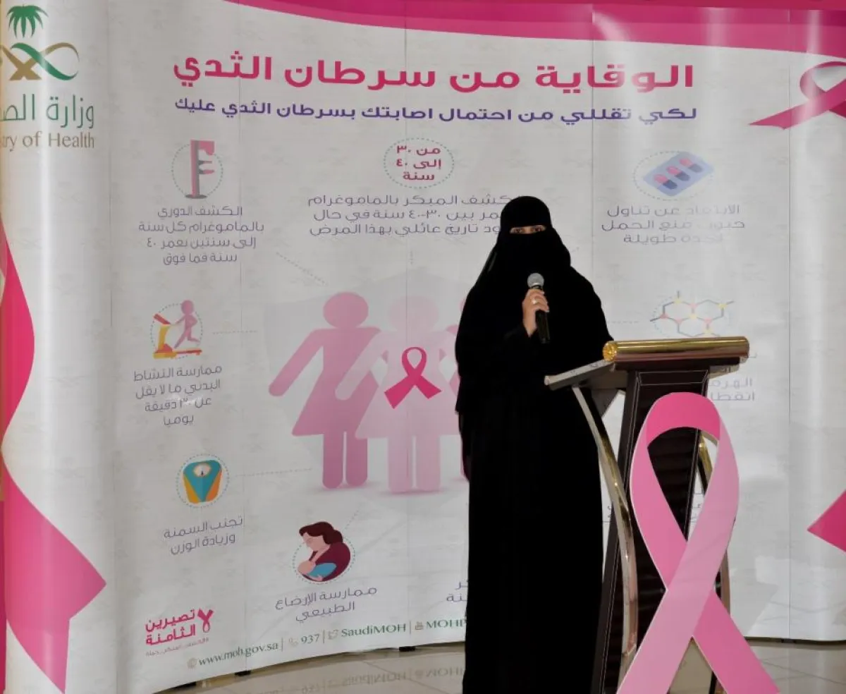 أكدت الدكتورة عبير الأحمدي منسقة البرنامج الوطني لسرطان الثدي، إلى أن سرطان الثدي يعتبر السرطان الأكثر إنتشاراً لدى النساء عالمياً، وأن نسبة حدوث السرطان لدى السيدات السعوديات يحدث في سن مبكرة مقارنة بالبلدان المتقدمة وأن معظم الحالات يتم إكتشافهابمراحل متأخرة مما يؤدي إلى إنخفاض نسبة الشفاء.