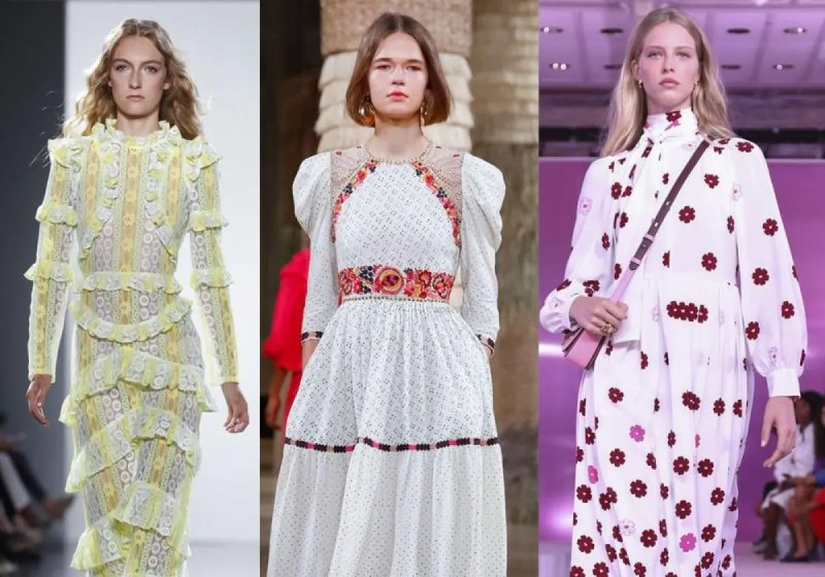 كما قدمت بعض الماركات فساتين صيفية بسيطة وعصرية، تناسب إطلالات النهار والعطلات، وتتسم بتصاميمها الواسعة والمريحة، مثل: فساتين Ulla Johnson، Lan Yu، وفستان كيت سبيد Kate Spade المزين بالورود.