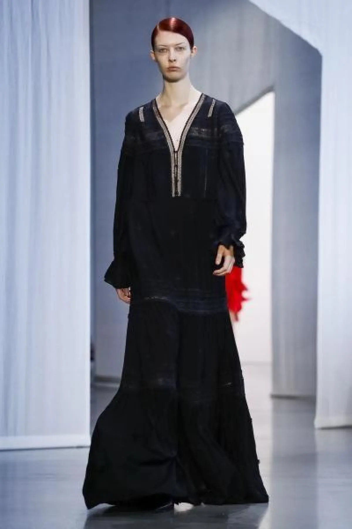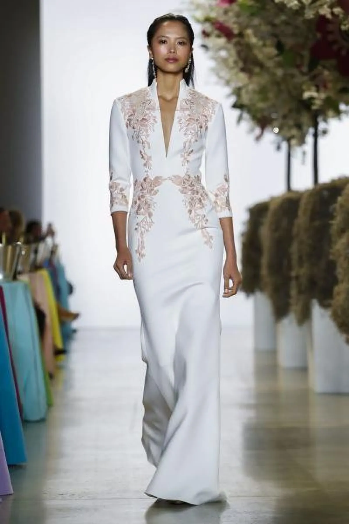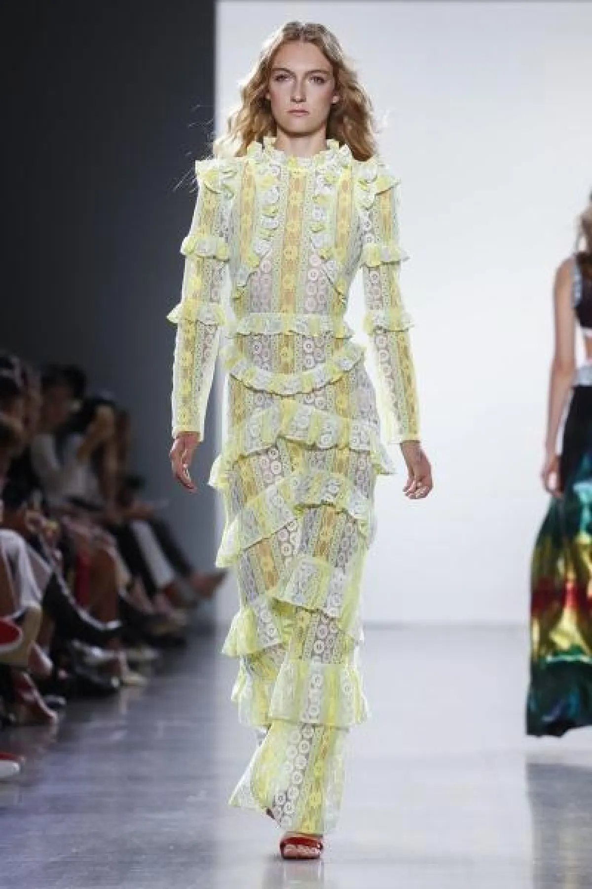أيضًا برزت فساتين للمحجبات المزينة بالكشكش في جميع أنحائها؛ لتضيف للمرأة لمسة أنثوية لافتة، مثل: فساتين Vivienne Hu، وYuna Yang.