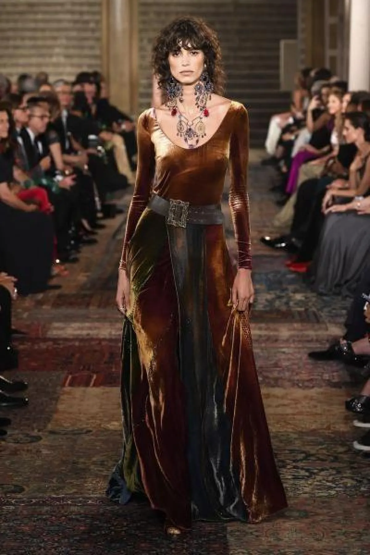 كذلك قدمت دار رالف لورين Ralph Lauren موديلات فساتين للمحجبات بتصميم مخملي عمودي مع أكمام طويلة، ومنها بالقبّة المرتفعة.