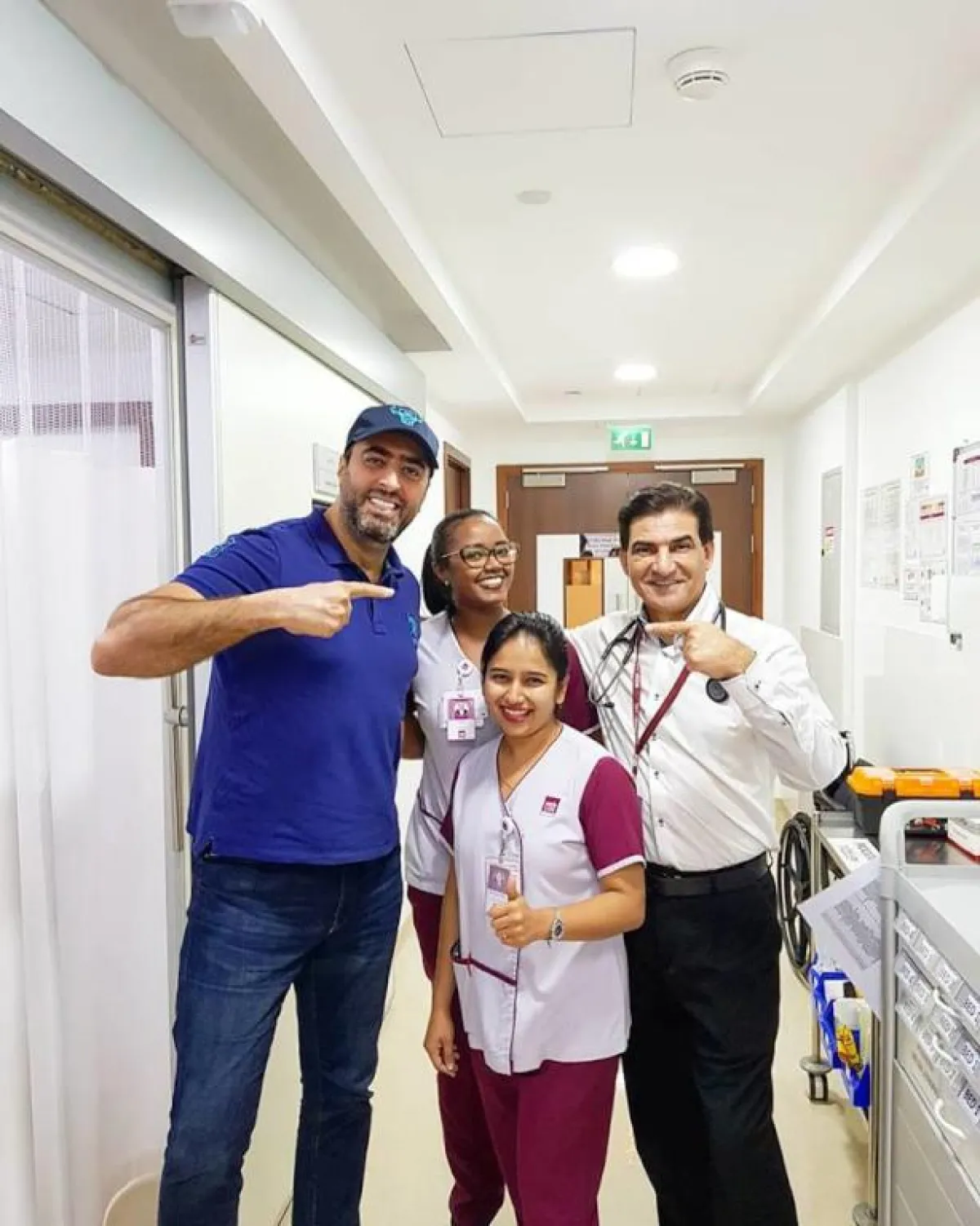 النجم السوري عبّر عن شكره للكادر الطبي والمستشفى الذي قدم له الخدمات الصحية وقال في تعليق نشره عبر صفحته الرسمية على " فيسبوك " كل الشكر للكادر الطبي الرائع وعلى رأسه الدكتور يحيى كيوان الراقي والبارع في عمله على الرعاية الرائعة التي احاطوني بها خلال الوعكة الصحية التي مررت بها مؤخرا والشكر موصول لمشفى ميدكير دبي الاكثر من مميز .... من القلب شكراً ".