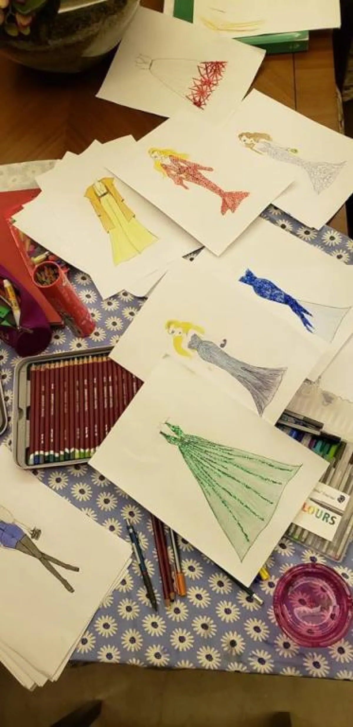 نشر إيلي ديب عبر حسابه على "فايس بوك" صورة لنماذج من الفساتين التي صممتها إبنته تيا وعلق على الصورة "آخر تصاميم إبنتي تيا".