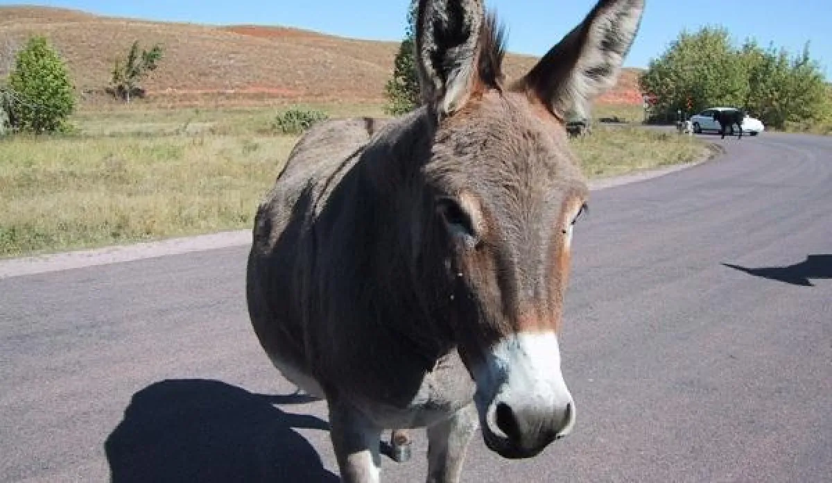 حمار يسير في طريق سيارات
