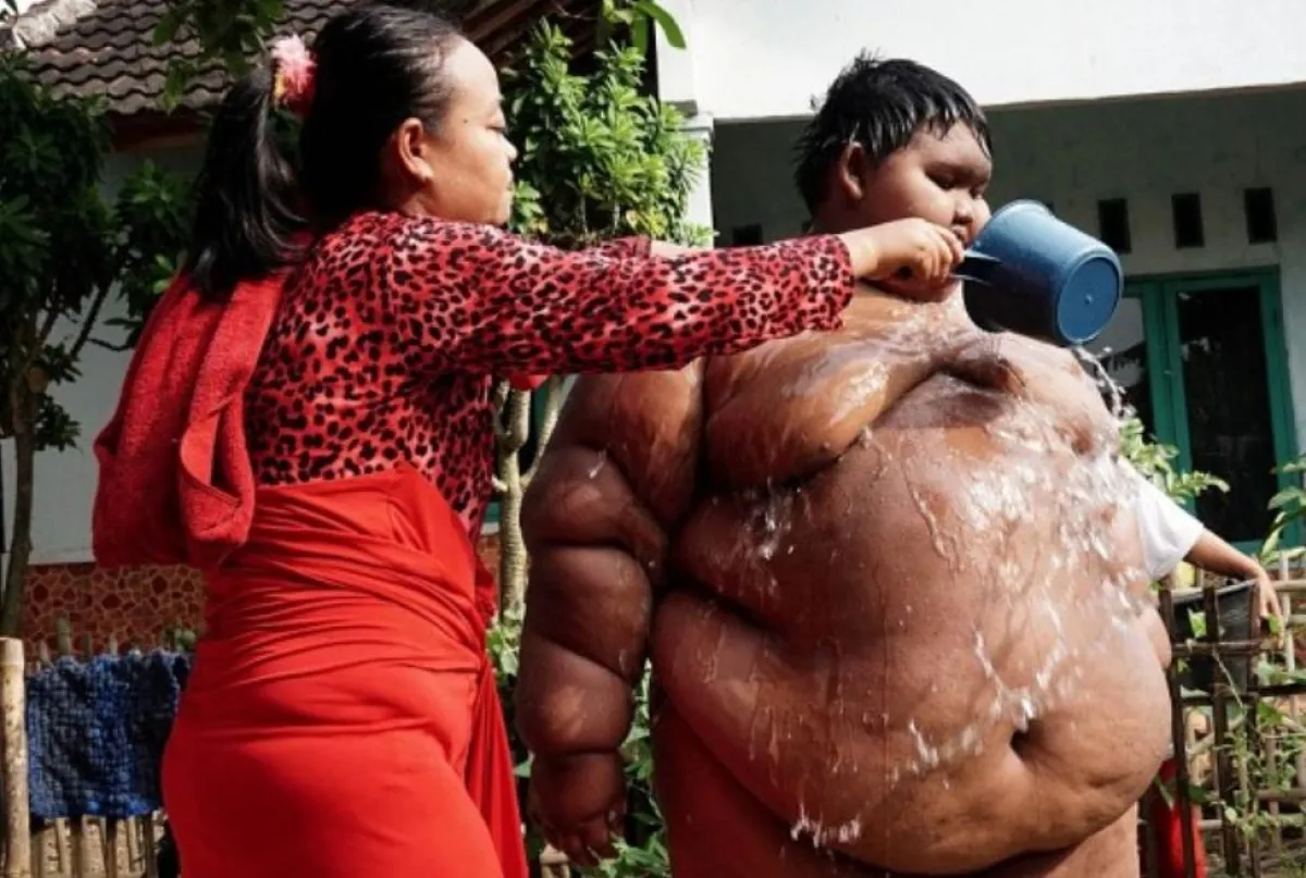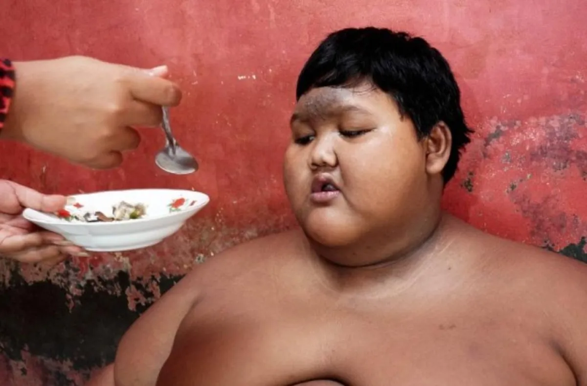 ويعيش أسمن طفل في العالم، داخل إندونيسيا، ويبلغ من العُمر 12 عامًا، ويشتهر بوزنه الثقيل حيث وصل إلى 192 كيلو غرام، وهو دائم الجوع حيث يتناول 5 وجبات أساسية في اليوم الواحد، مما قد يُهدّد حياته.