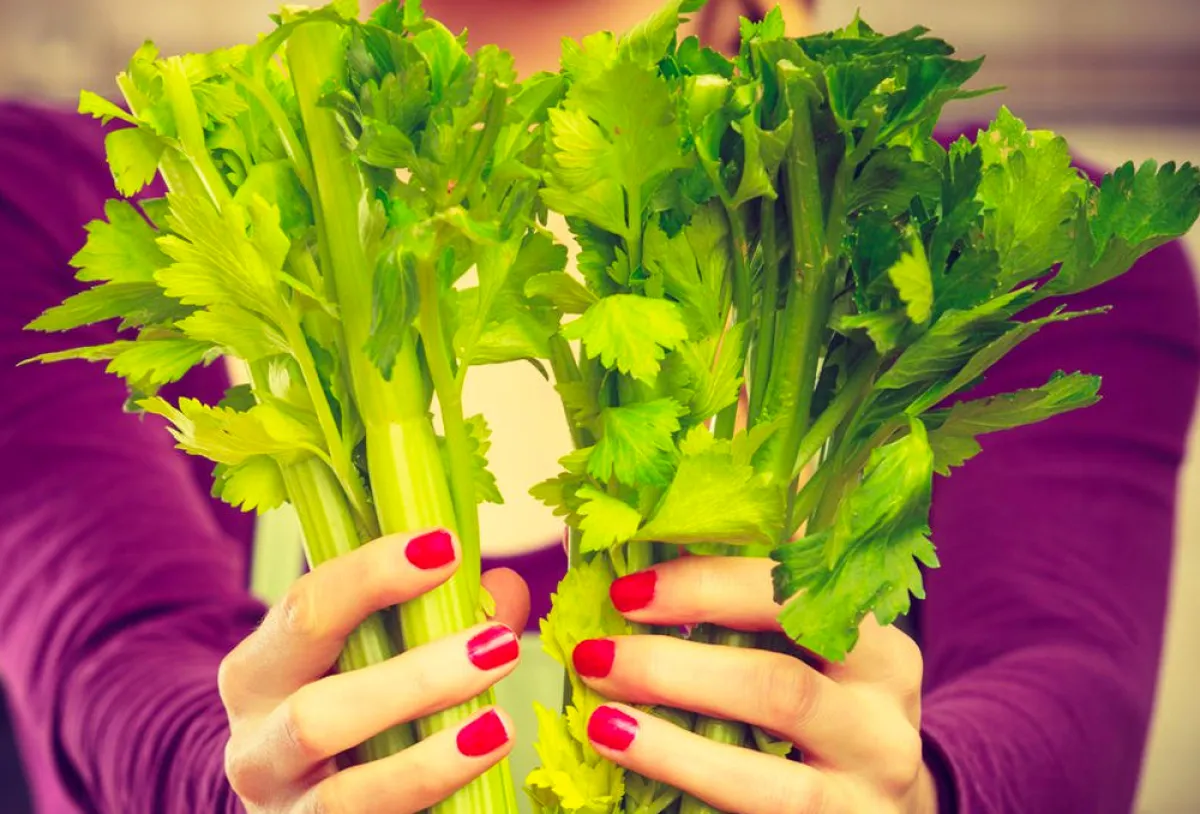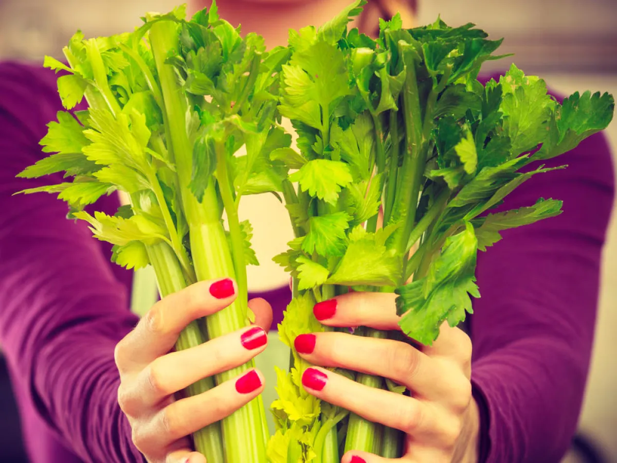 • عصر الكرفس، مع إضافة ملعقة كبيرة من زبدة اللوز إليه، فضلًا عن التوت البرِّي المُجفَّف الخالي من السكر ورشَّة من القرفة.