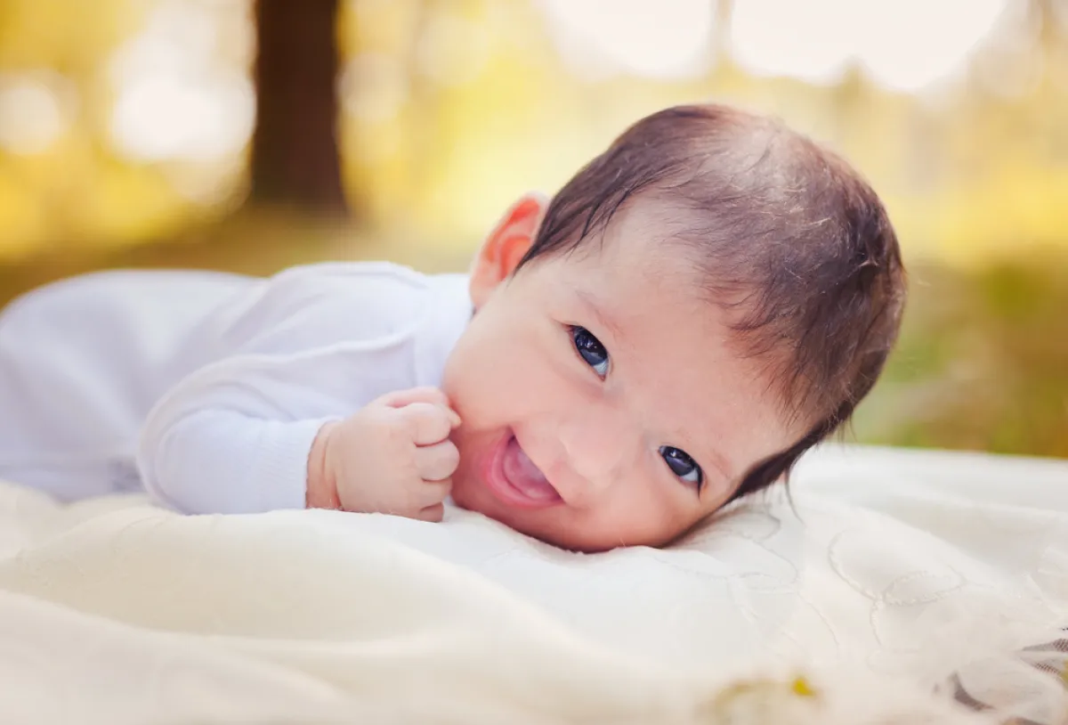 * يناغي ويبتسم، معظم النغمات الصوتية على شكل بكاء.