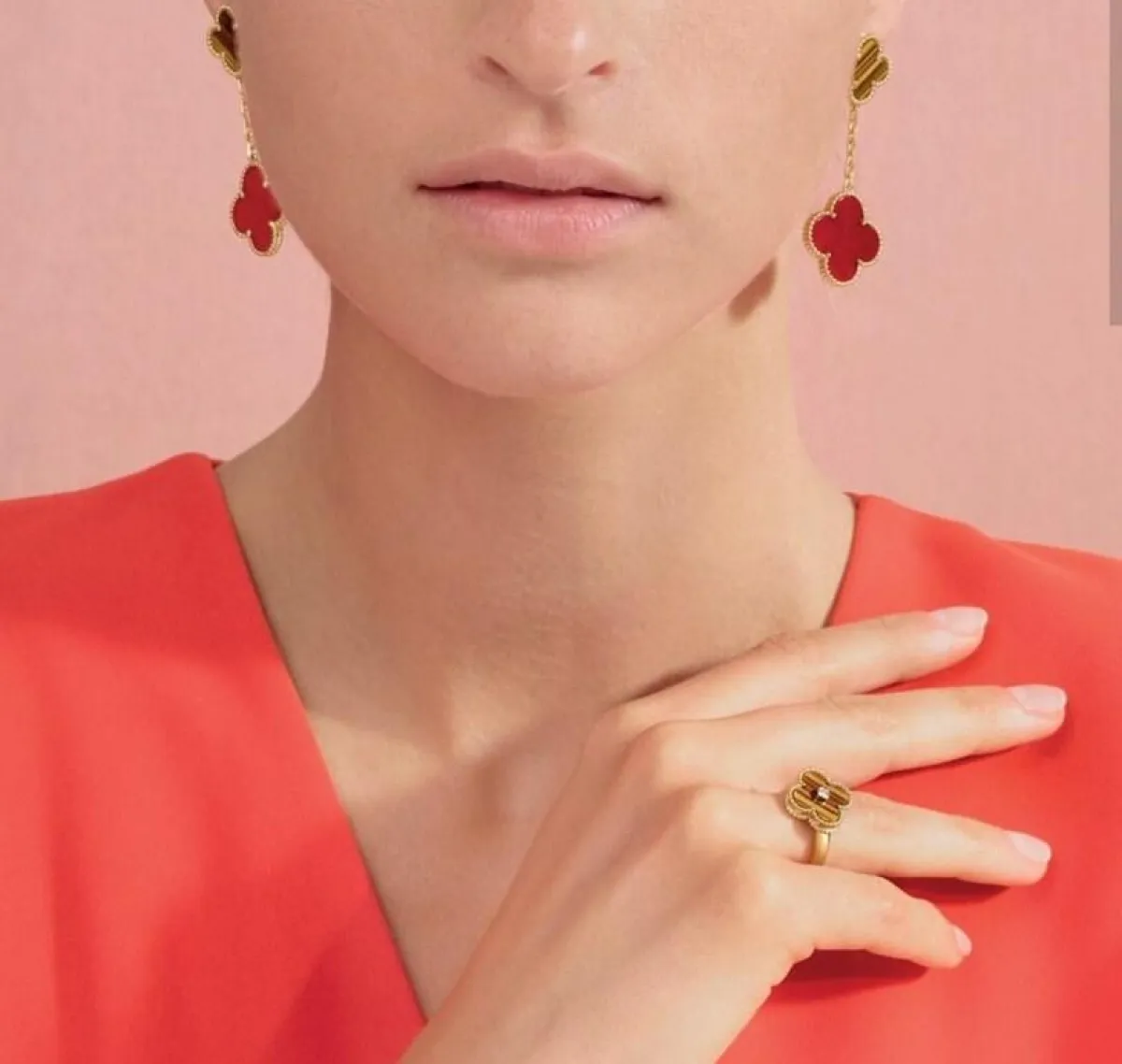من بين موديلات الأقراط الناعمة والتي يمكنك اعتمادها في النهار ومناسباتك اليومية، هذا التصميم من فان كليف أند أربلز Van Cleef&Arpels والذي قدّمته الدار ضمن مجموعة ألهامبرا Alhambra. وستجدين هذه الأقراط بألوان متعدّدة.