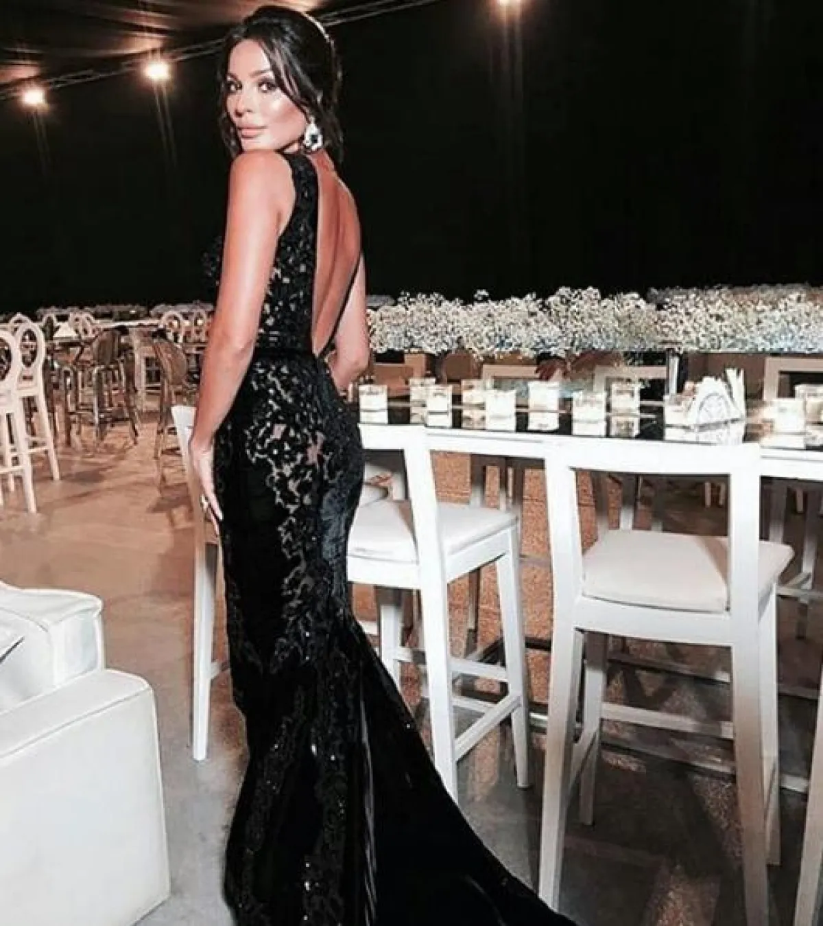 تألقت نادين نجيم أيضًا باللون الأسود في إحدى المناسبات، حيث اختارت فستانًا بتصميم ناعم وبسيط من “آلايا” Alaia، نسقت معه حزامًا عريضًا من الجلد على الخصر، وصندلًا بكعب عالٍ باللون الأسود أيضًا.