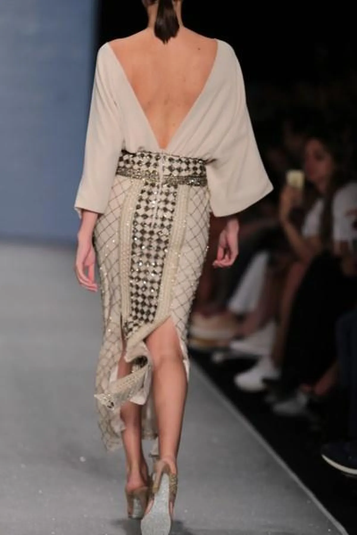 وفي ختام الحفل زار مصمم الأزياء العالمي كنزو تاكادا، رشيت بازيبالي في الكواليس لتهنئته بالعرض.