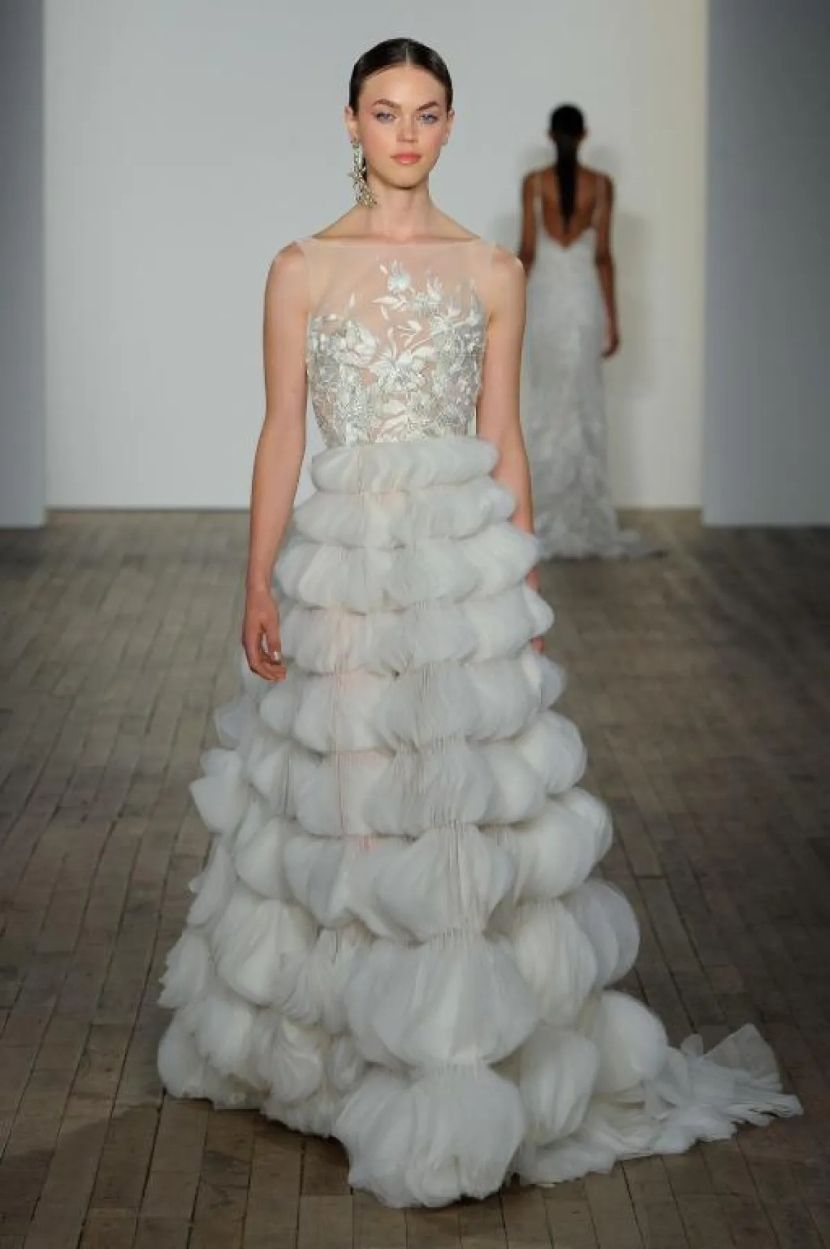 تُعتبر فساتين الزفاف بتنانير الطبقات متدرجة الطوال Layers من صيحات الموضة الرائجة في عروض فساتين زفاف 2019 لموسم الربيع والصيف المقبل.