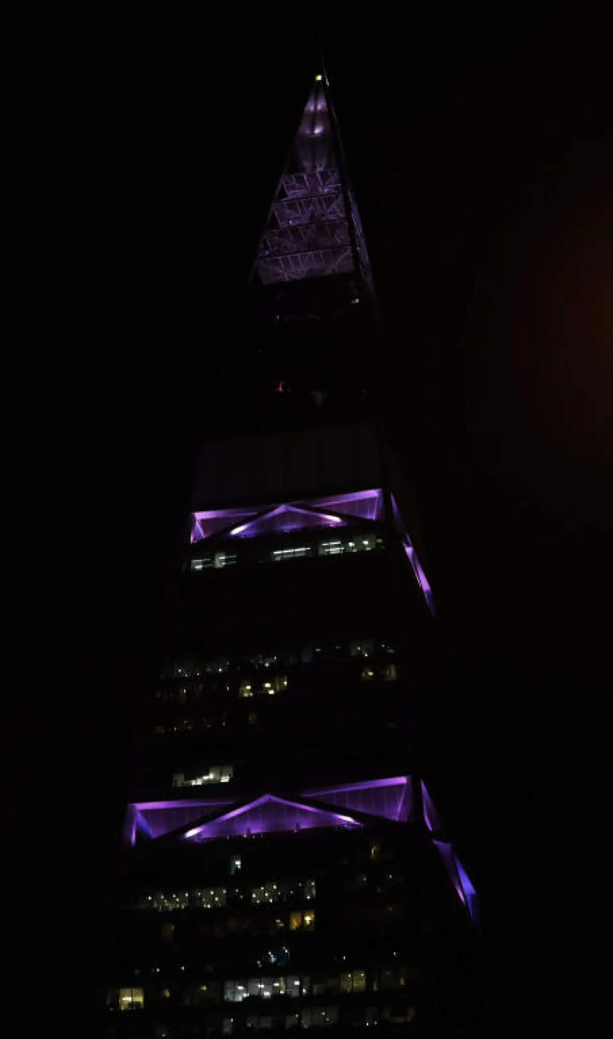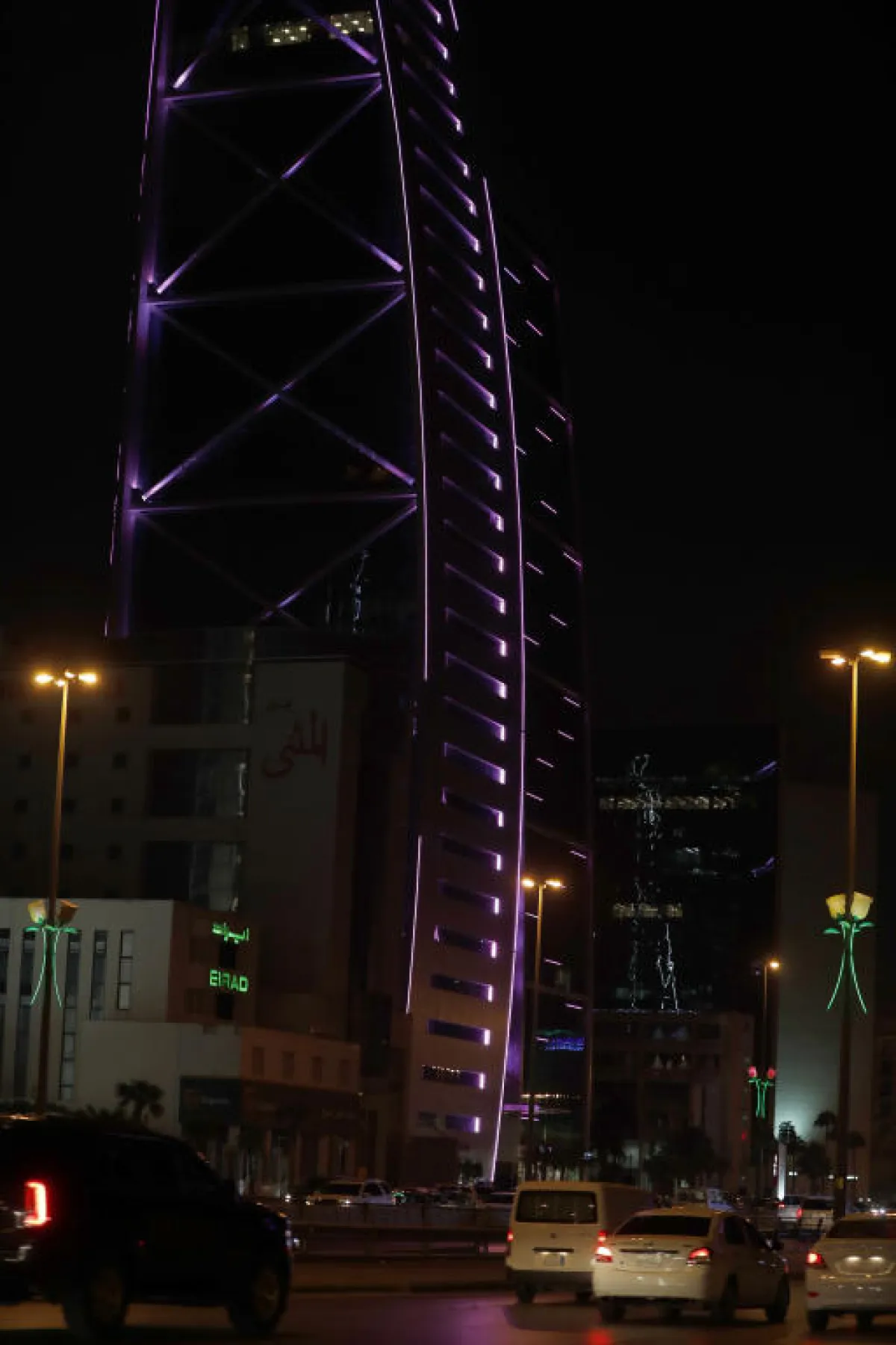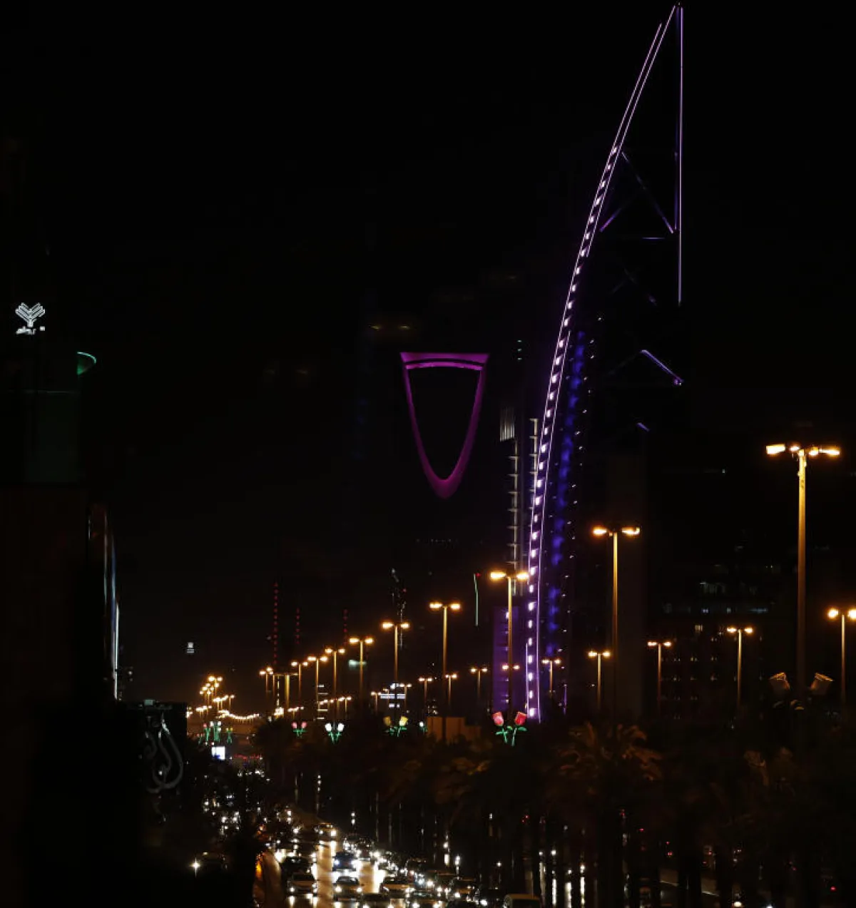 وفي الصور تجدون برج المملكة والفيصلية وأبراجًا أخرى تلونت بهذا اللون في الرياض.