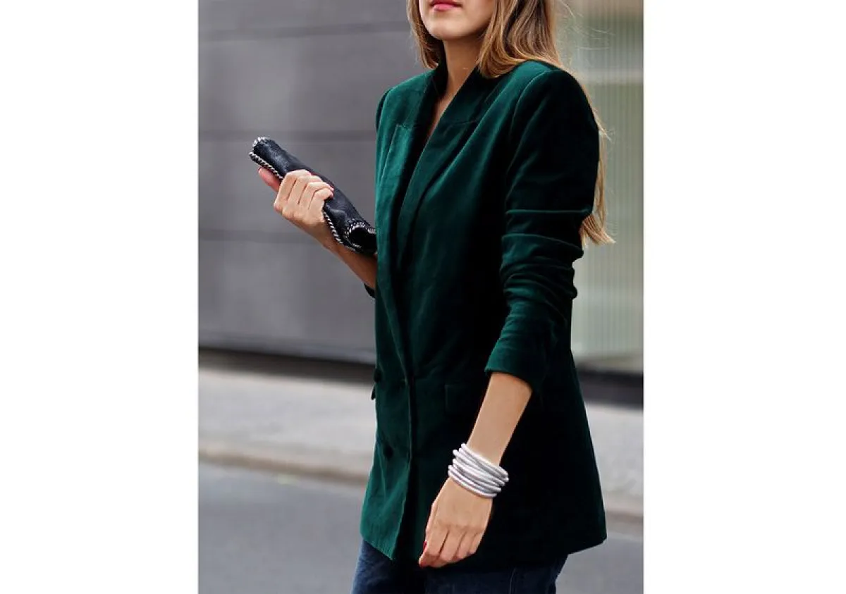 تمكنت الممثلة الأمريكية بليك ليفلي أن تخطف الأنظار عندما ظهرت بـ بدلة زرقاء من المخمل لتعلنعنها كصيحة تجتاح الخريف والشتاء، واللافت أنها ظهرت بأكثر من أسلوب، فيمكنكِ الاختيار بين الألوان نسيج المخمل الكلاسيكي الداكن، وصيحة أخرى من المخمل البارز بخطوط طولية.