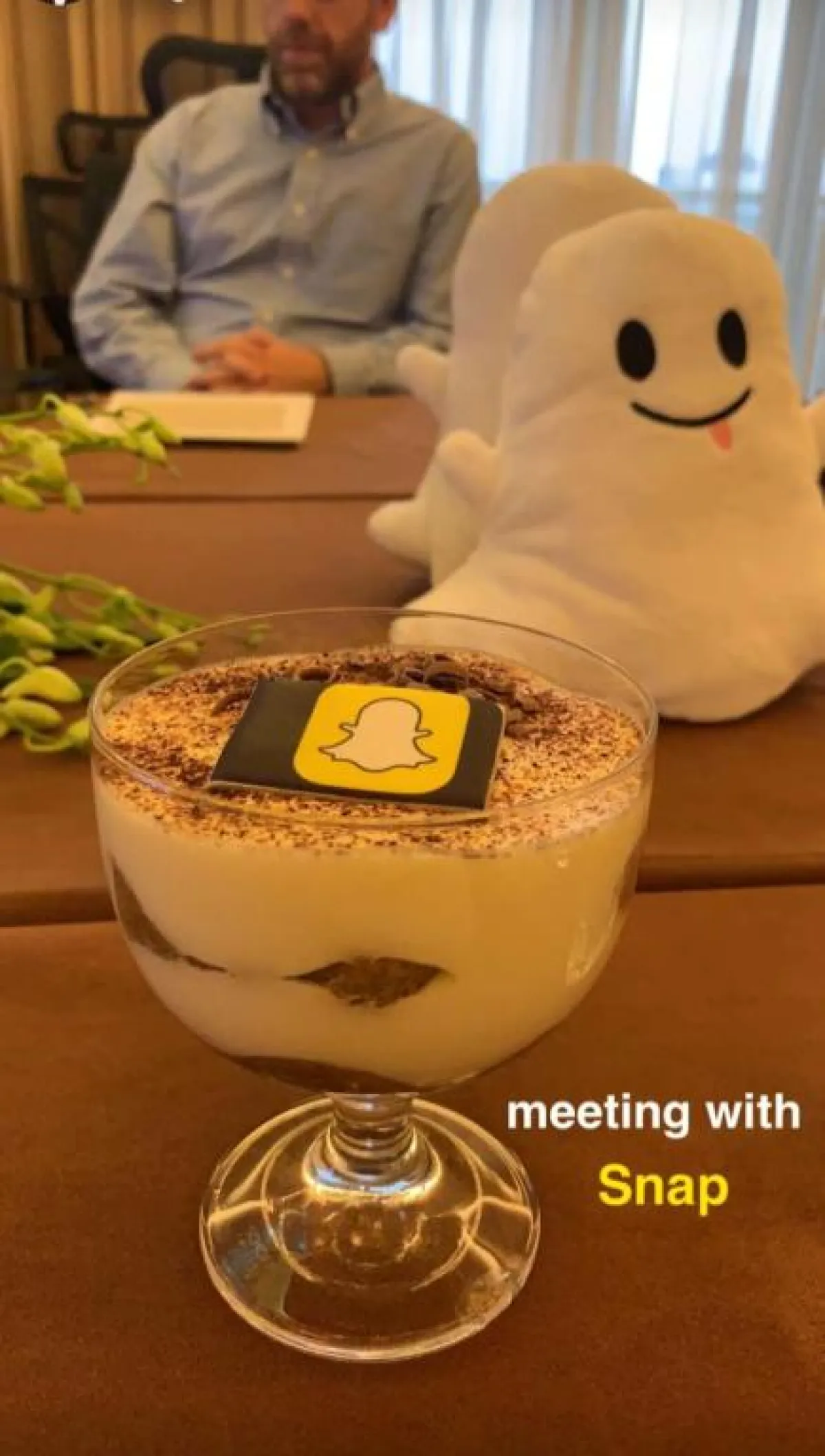 وذلك في إطار اهتمام فريق "سناب شات" بالاجتماع بالمؤثرين في التطبيق بمفردهم، أو بمجموعات صغيرة لسماع اقتراحاتهم، والعمل على تطبيقها فعلياً. وفي نهاية الاجتماع، أُعطي كل مؤثرٍ حقيبة صغيرة على هيئة شبح "شعار سناب شات"، تحتوي على سترةٍ، تحمل الشريط الجانبي للتطبيق، وشبحاً صغيراً.