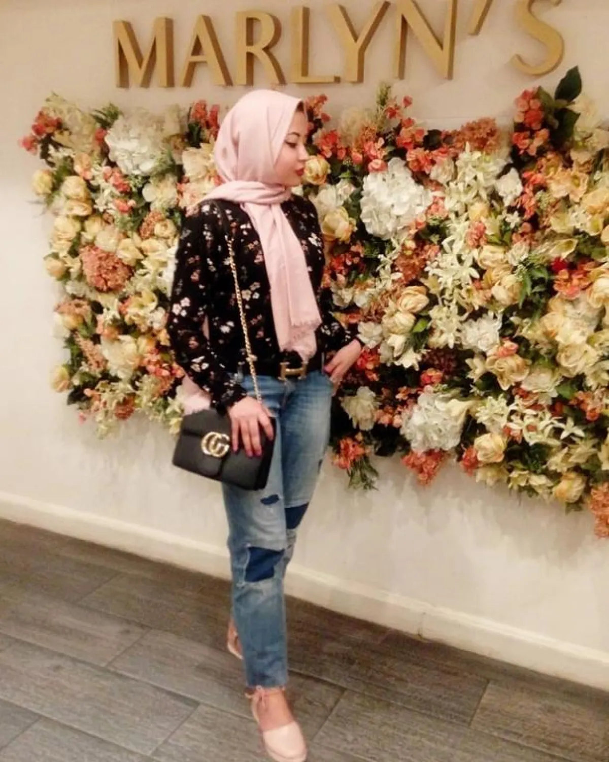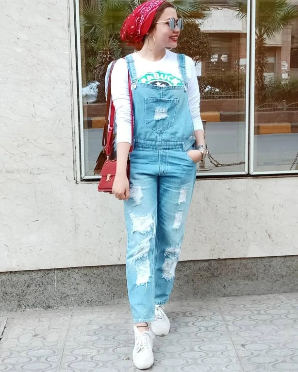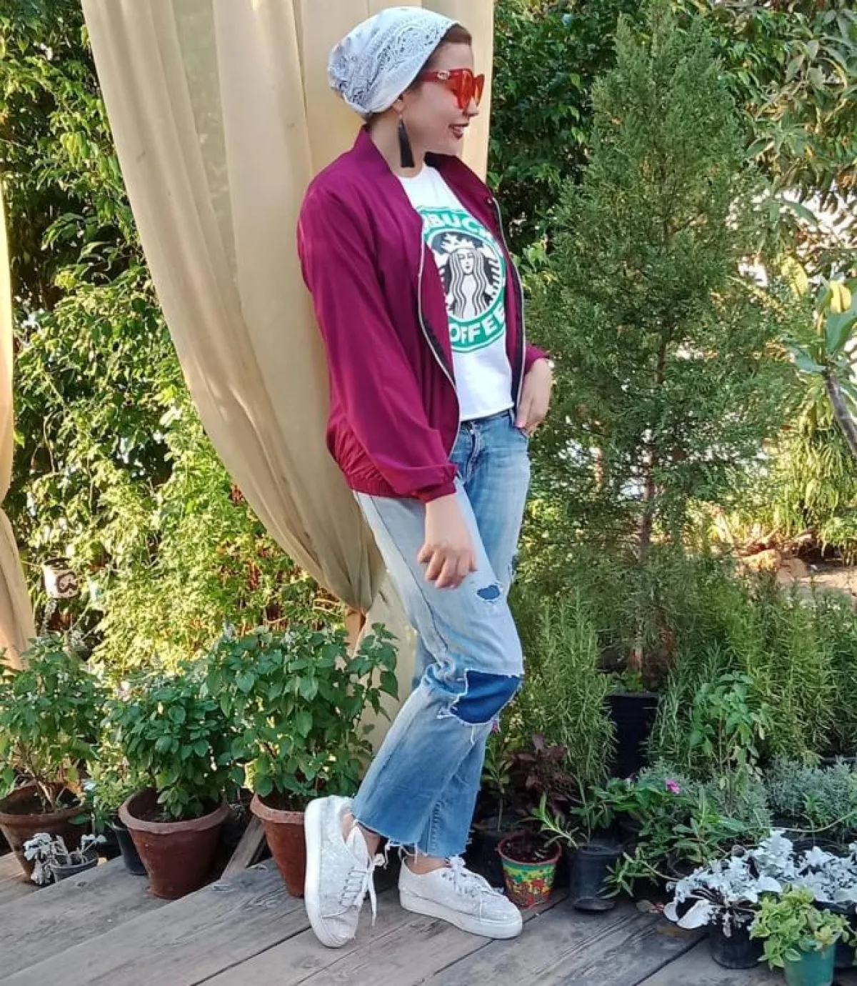 تي شيرت باللون الأبيض لإحدى العلامات التجارية الشهيرة نسقته مع البنطلون الأسود الفضفاض، وتارة أخرى مع الجمبسوت، هذا إلى جانب الكارديجان الطويل والجاكت القصير باللون البرغندي. نعم إنها القطعة نفسها، ولكنها في كل مرة تظهر بشكل مختلف تماماً.