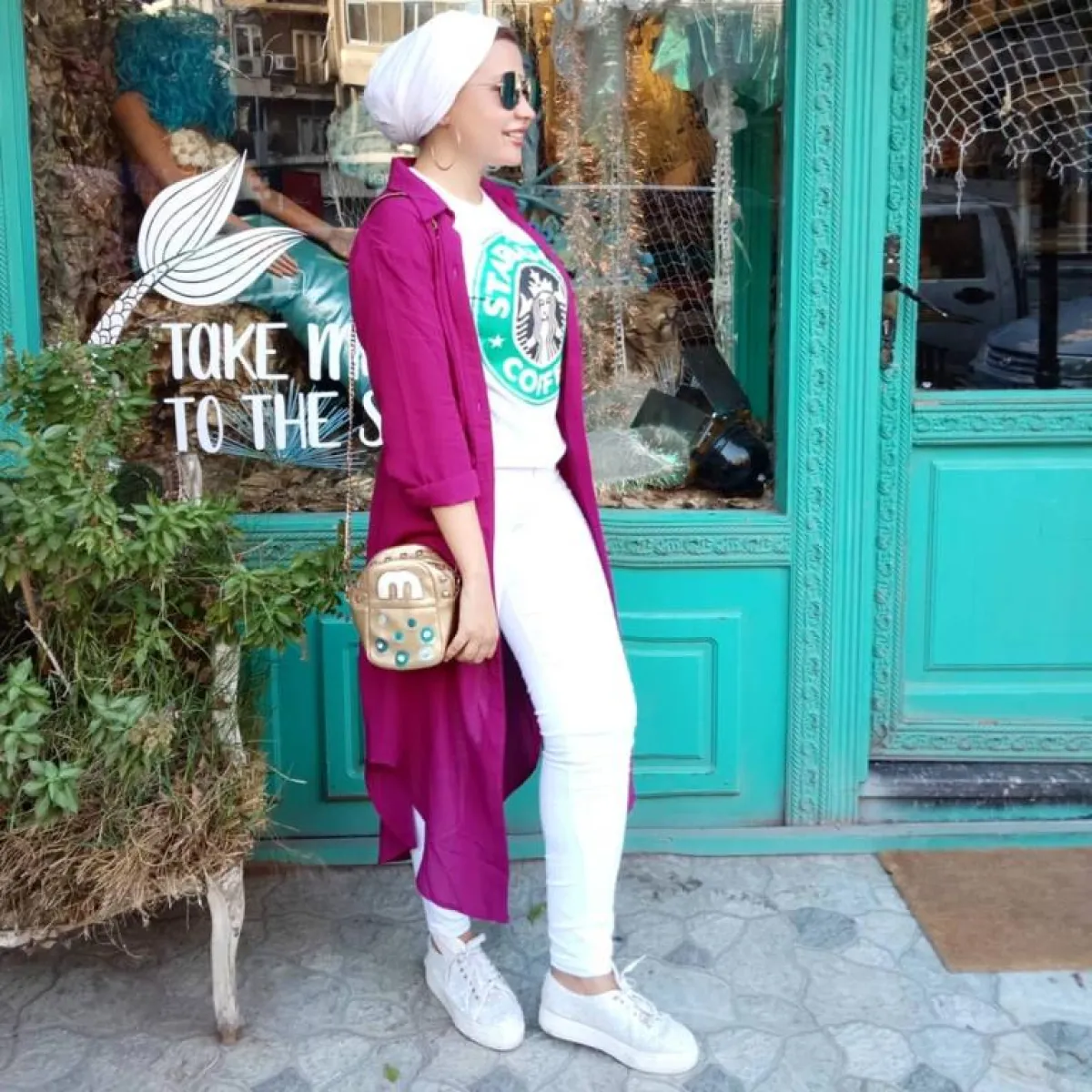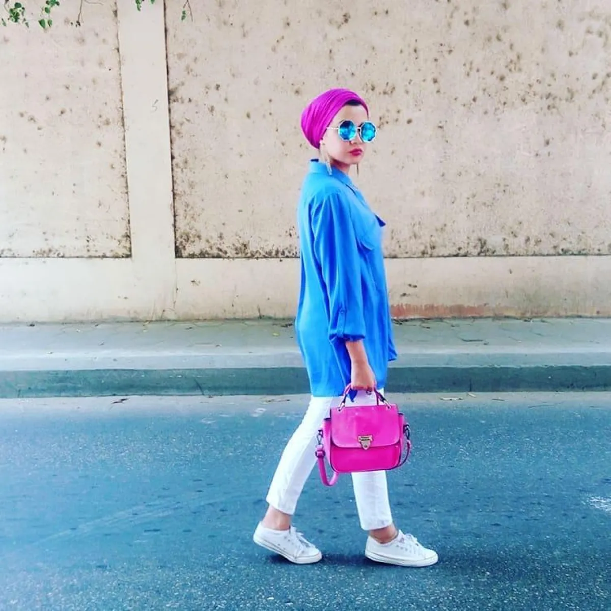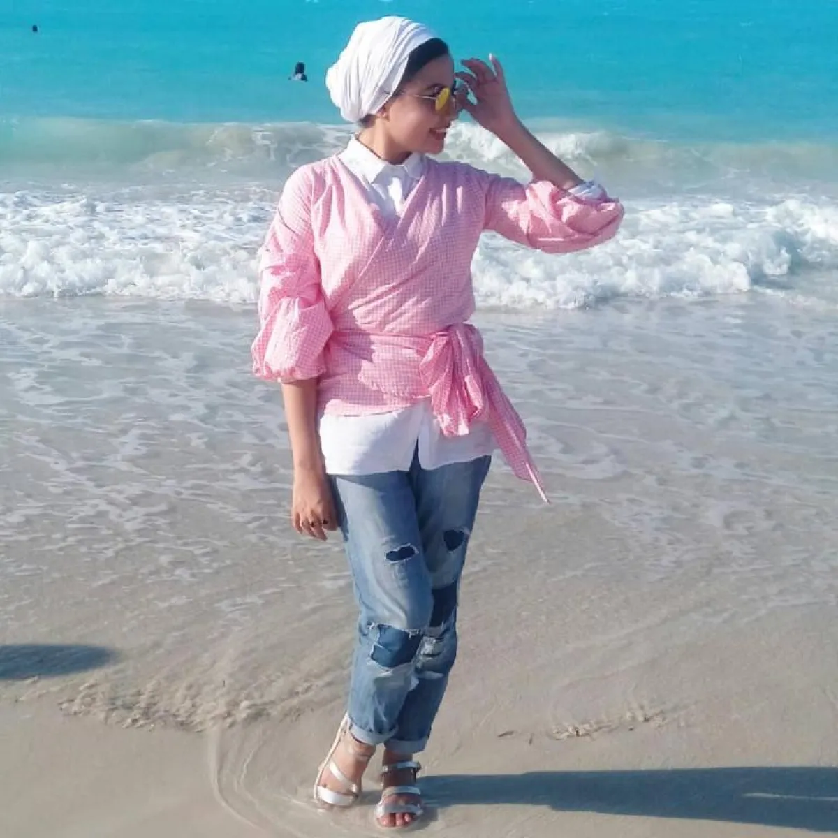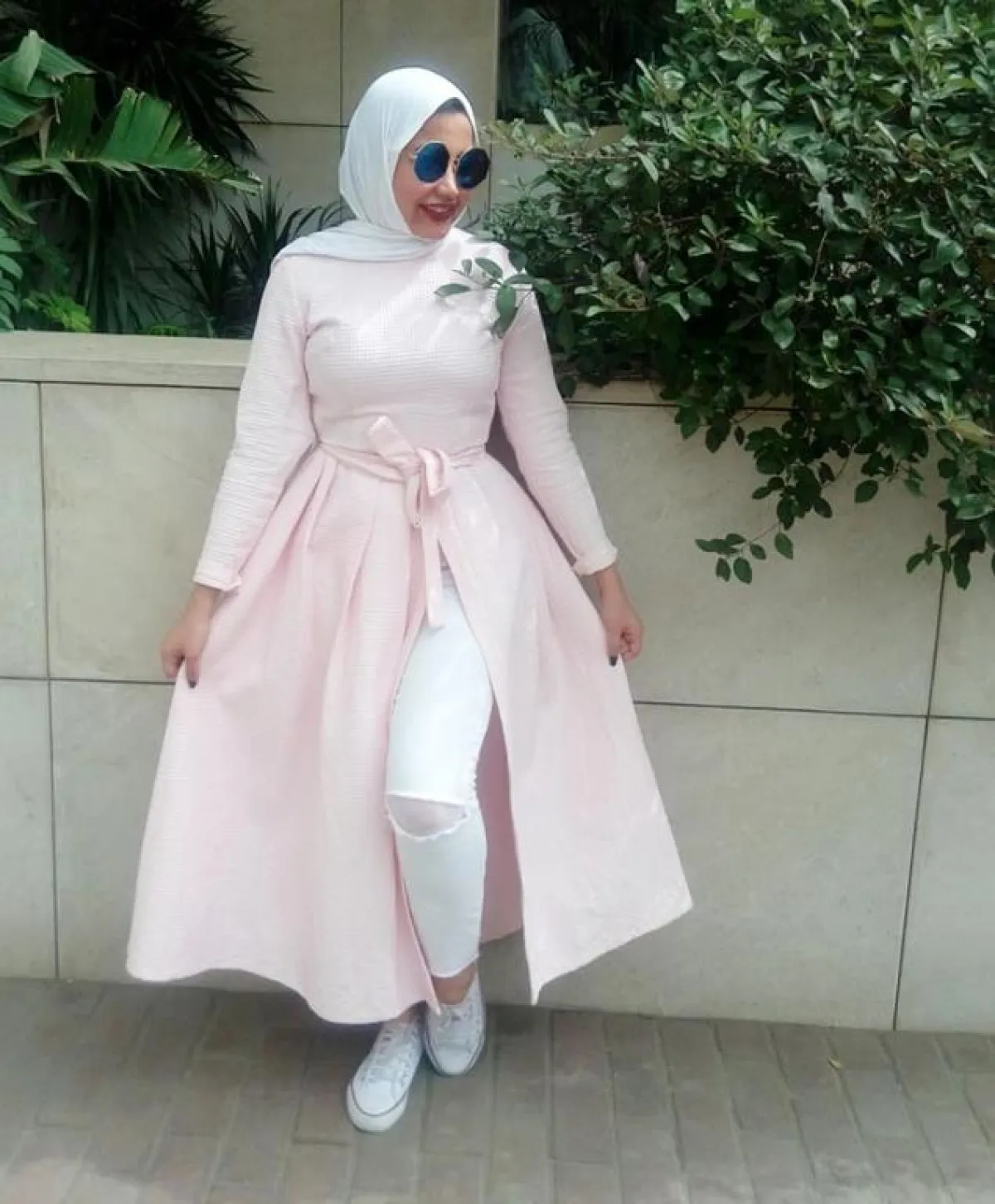تحب الفاشينيستا هاجر البنطلون باللون الأبيض، وهذا ما يدفعها إلى تنسيقه بأكثر من طريقة جذابة مع ألوان الباستيل المختلفة، ومع الفساتين بصيحة الـ slit.