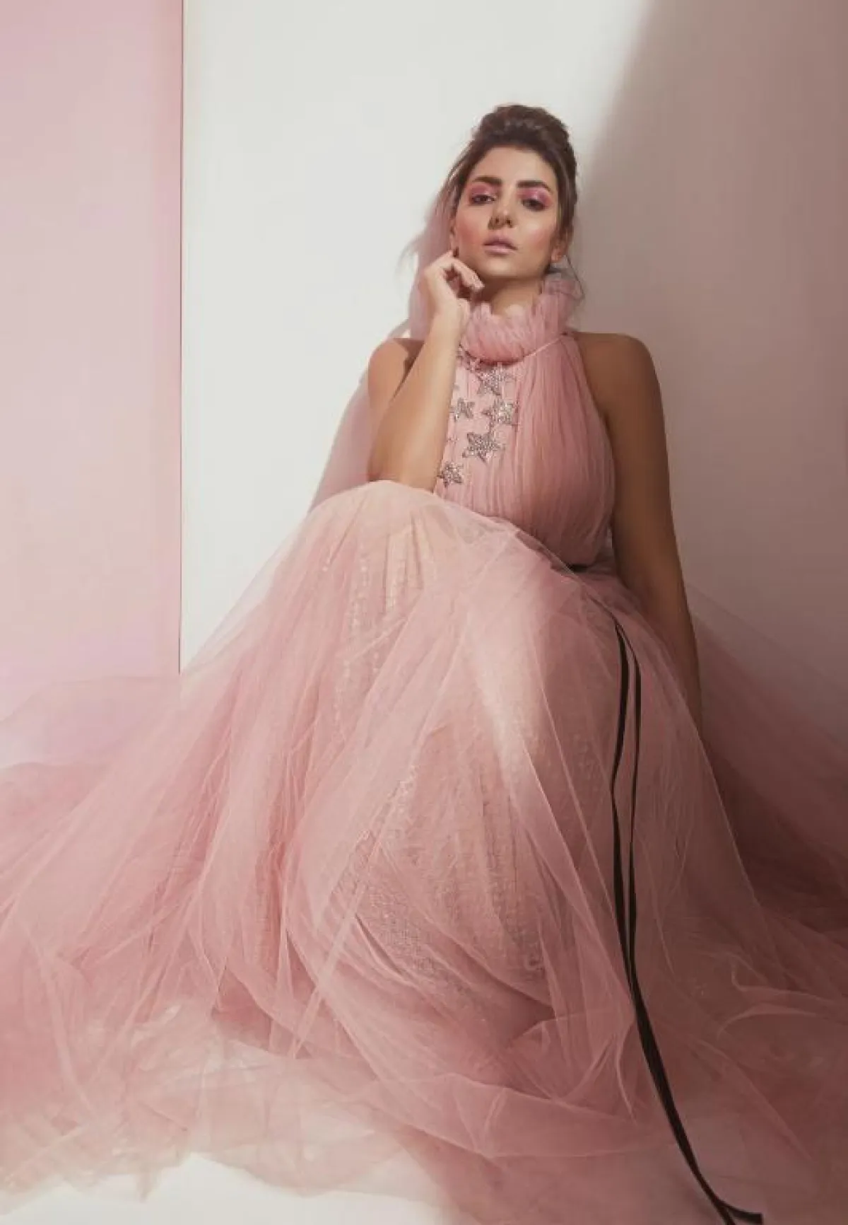 وتضمنت المجموعة 7 أثواب مصنوعة من أجود الأقمشة، باستخدام تدرجات مختلفة من اللون الوردي.