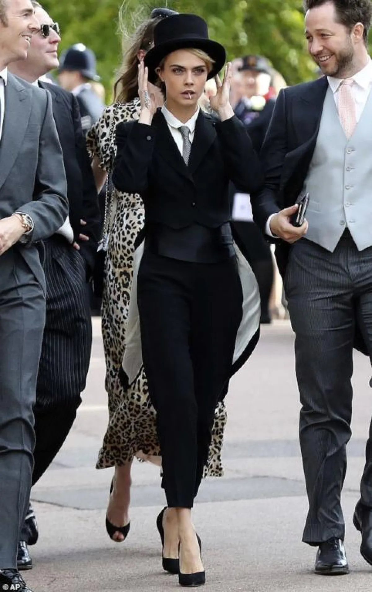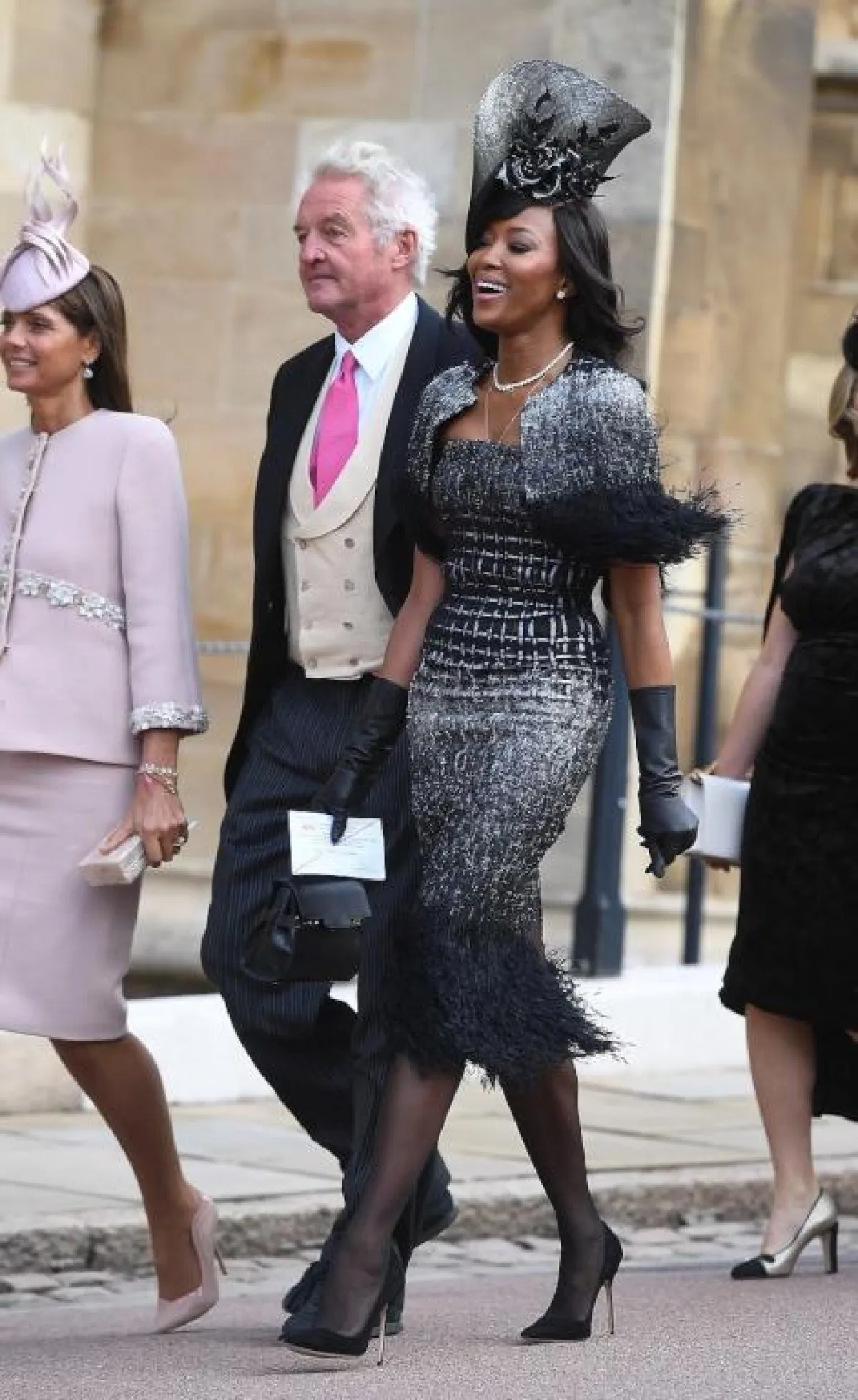 أيضاً وقع اختيار عارضة الأزياء الشهيرة نعومي كامبل Naomi Campbell على دار رالف أند روسو Ralph&Russo حيث اختارت فستاناً باللونين الأسود والفضي مع بوليرو مماثل، وقد زين الريش الاطلالة بطريقة ناعمة، وأكلملت اللوك بقبعة لافتة وقفازات من الجلد وحذاء كعب عالي.