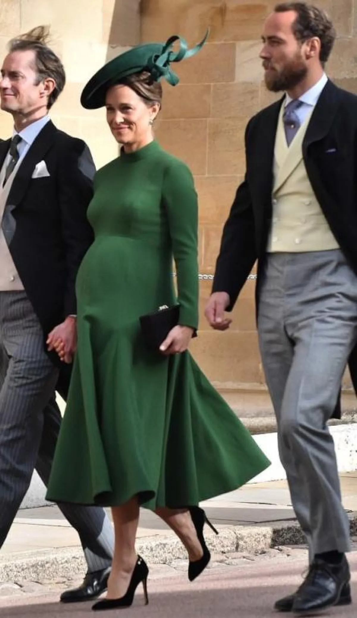 بيبا ميدلتون Pippa Middleton اختارت فستان باللون الأخضر من تصميم “ايميليا ويسكتيد” Emilia Wickstead أبرز حملها بطريقة ناعمة، وقد أكملت اللوك بقبعة باللون الأخضر وحقيبة يد وحذاء باللون الأسود.